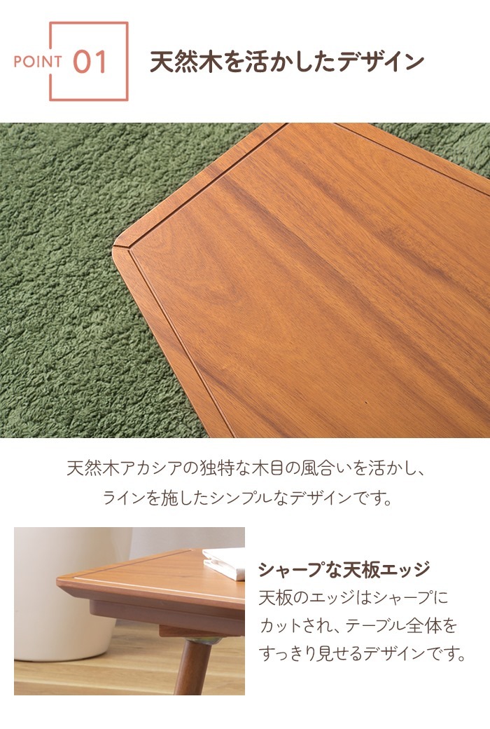 | コタツ コタツテーブル センターテーブル ミニ コンパクト 一人使い オールシーズン ハーフヒーター 天然木 アカシア デザイン おしゃれ シャープ |