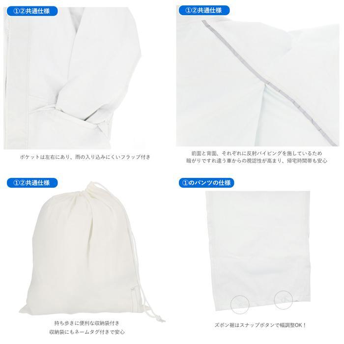 | 商品説明 | ・自転車通学や通勤に最適!雨や風を防ぎ、ムレにくい透湿素材を使用した理想のレインウェア。 ・レインコートとパンツ、上下に分かれたストレッチスクールバッグスーツ(FIC-ST8)と、さっと着られるストレッチスクールバッグコート(FIC-ST6)の2タイプが選べる! ・軽さと動きやすさを実現した、ストレッチ素材を採用。耐水圧10,000mm以上、透湿度5,000/平方m・24h以上。(B-1法) ・前面と背面、それぞれに反射パイピングを施しているため、暗がりですれ違う車からの視認性が高まり、帰宅時間帯も安心。 ・リュックを背負ったままでも着用できる、ワイド背マチ構造。背マチ部分が広くとってあり、胸部の圧迫感を軽減。 ・クリアーシールド素材の大型フードで前が見やすくヘルメットの上からでも被れる。 |