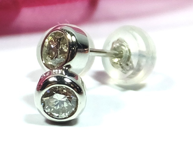 Pt 900 プラチナ製 スタッド タイプ ベゼル セッティング、引っ掛かりにくい、ふせ込み シンプルなフォルムが 人気、一粒 ダイヤモンド ピアス。 【ダイヤモンド】 ・固い絆を象徴する宝石。 ・持ち主の隠された能力を引き出し、進むべき方向に導き、成功をもたらしてくれます。 ・女性のあこがれ宝石の王様ダイヤモンドは、プレゼントにも人気のメモリアルジュエリーです。 ・4月の誕生石 ・うお座の星座石 (2/20~3/20) ・おひつじ座の星座石 (3/21~4/20) ・てんびん座の星座石 (9/24~10/23) ・結婚1周年の記念宝石(一粒ダイヤモンド) ■ご自分や大切な方の誕生石、星座石を身につけていると 幸運パワーが得られるお守り、守護石になると言われています。 ◆詳細◆ ・使用宝石 / ダイヤモンド(ラウンドカット) 0.15 ct × 2石 (刻印有り) 計 0.30 ct ・宝石のサイズ / 約 3.5 mm X 3.5 mm ・トップ 全体サイズ / 約 縦 4.3 mm X 横 4.3 mm X 厚み 2.5 mm ・金属素材 / Ptプラチナ(Pt900の刻印有り) ・ポスト / 長さ 約 10 mm 太さ 約 0.7 mm ・キャッチ / Ptプラチナ シリコンゴム付き ダブルキャッチ(Pt900の刻印有り) ・総重量 / 約 0.90 g ・付属品 / 専用ケース付き ・保証書付き | |