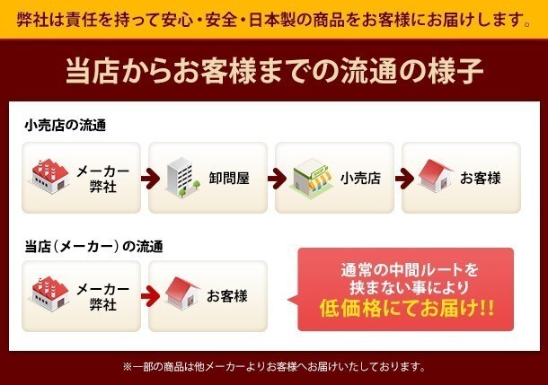 | ● 商品がお手元に届きましたら、すぐに、注文と違ったものが送られていない か確認してください。 ● 商品の品質に関しては万全を期しておりますが、万一商品が破損・汚損して いた場合、またはご注文と異なる場合は、お届け後7日間以内にご連絡下さ い。 すぐに返品・交換をさせていただきます。(この場合送料は当店で負担 いたします。) ● お客様のご都合による返品は、7日以内に返品希望のご連絡をいただければ返 品をお受けいたしますが、この場合の往復の送料・手数料はお客様のご負担 とさせていただきます。 ●返品・返金方法 商品の梱包・配送業者の手配、返品運賃はお客様ご負担でお願いします。 送料無料商品は、発送送料もご負担いただきます。 返金は商品が到着して商品確認後の返金となります。 組立た形跡があった場合、開封後著しく梱包の状態が悪いものは、 そのまま着払いにてお返しいたしますのであらかじめご了承の程お願いいたします。 お振込による返金の場合は振込手数料は相殺させていただきます。 [ご返品・交換・ご注文中止をお受けできない場合] ・お届けから8日以上経過した商品について、 ・お客様が一度ご使用になられた商品について、 ・お客様が汚損破損された商品について、 ・オーダーメイド依頼加工商品について、 ● なお、お届けから8日以上過ぎますと、返品につきましては、ご相談いたしか ねますので、ご了承下さい。 ● 配送途中の破損などの事故がございましたら、当店までご連絡下さい。 その場合送料・手数料共に当店で負担し、早急に新品をご送付いたします。 その際の対応は運送会社の担当者からご連絡する場合がございますので、あらか じめご了承下さい。 返品についてのお問い合わせは下記のところまで、ご連絡下さい。 連絡先 〒441-8087 愛知県豊橋市牟呂町字古田3-2 大信縫製 TEL:0532-46-0371 FAX:0532-46-0371 店舗連絡先:yp5h-ymmt@asahi-net.or.jp |