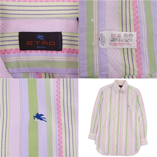 | 美品 エトロ ETRO シャツ ボタンダウンシャツ ロングスリーブ 長袖 ストライプ 刺繍 コットン トップス メンズ 40 |