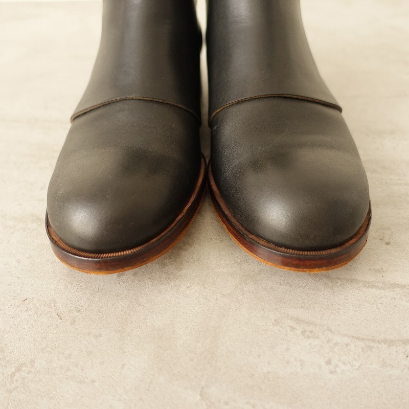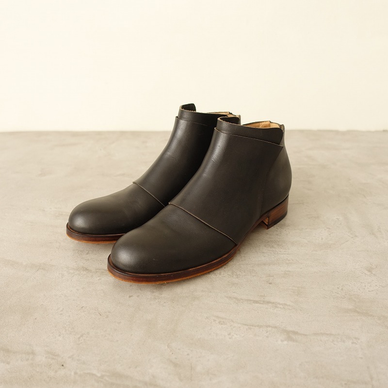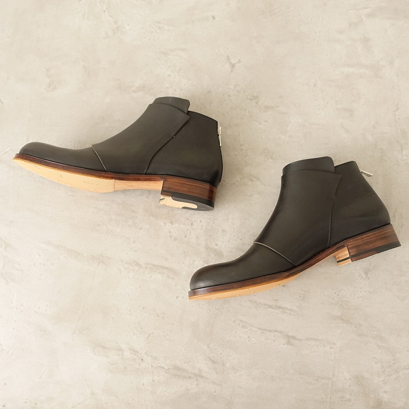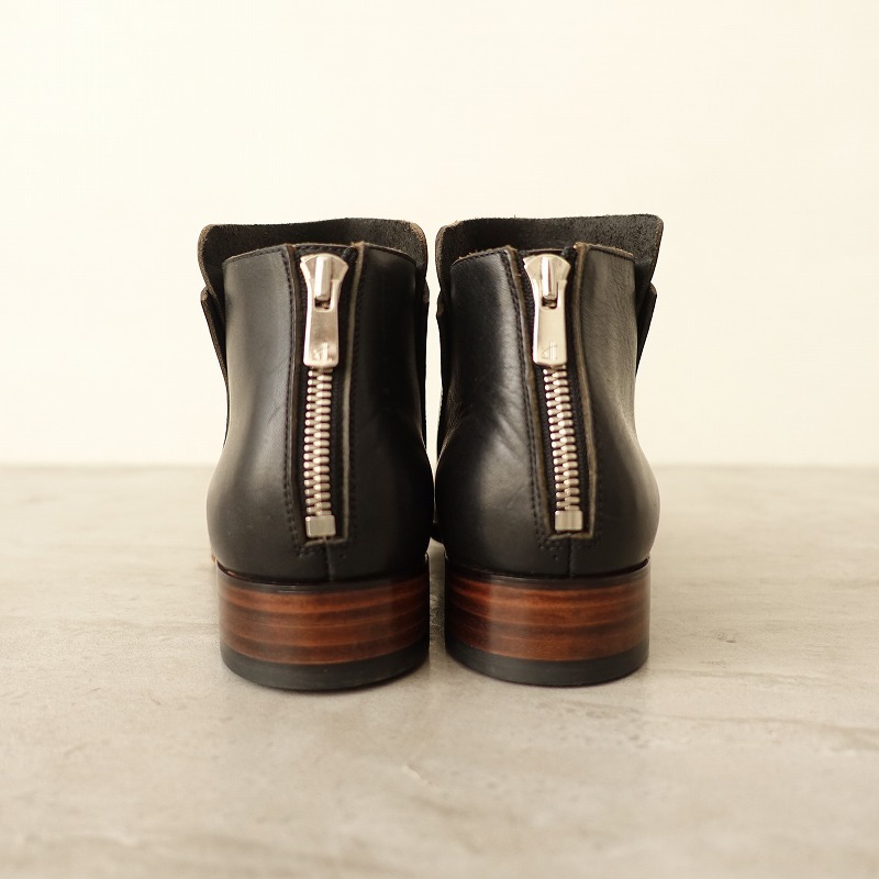 | formeのBack zip boots Lady’s バックジップブーツです。カラーはブラックで、レザー素材です。甲部分にレザー生地が二重にあしらわれたデザインです。ソールは木目調で、履き口後ろがファスナー仕様です。定価(メーカー希望小売価格)70,400円の商品です。 |