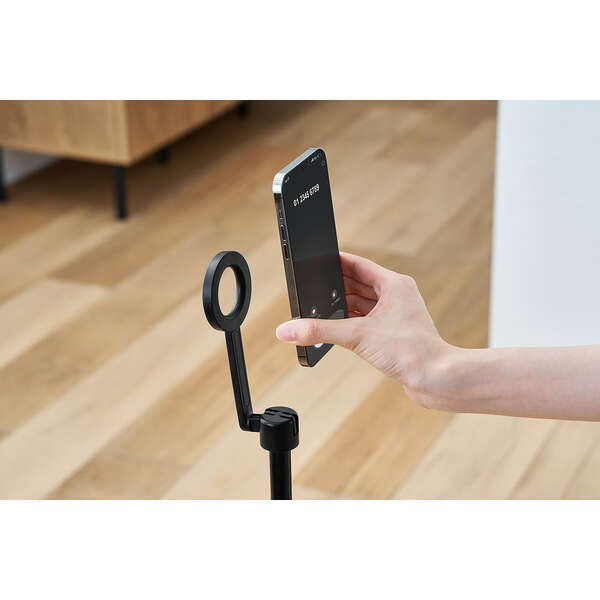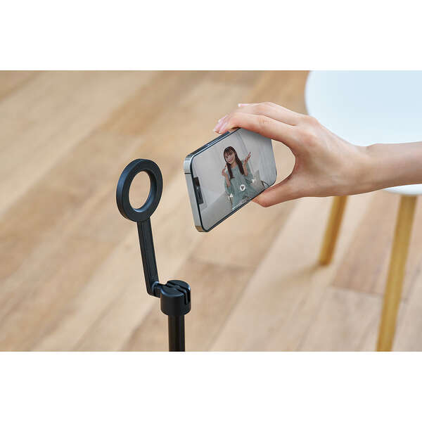 | ●マグネットで簡単にスマートフォンの着脱が可能。 動画などを撮ったあと、すぐに確認ができます | |