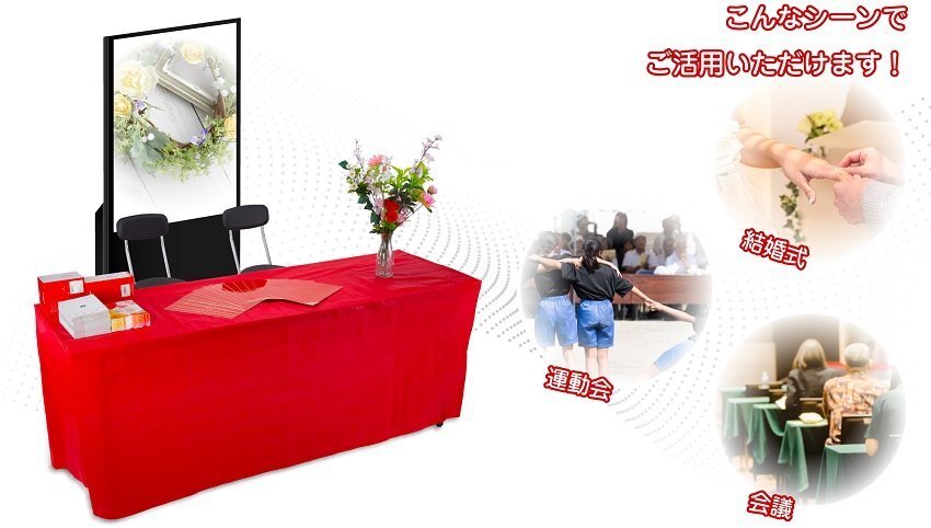 | 【 商品説説明 】 ★今までありそうでなかった、会議用長テーブルをオシャレに変身させる、マジックのようなイベントテーブルクロス。 ★2種類のテーブル用サイズを設定、シーンに合わせて、カラーは3色を設定しています。 ※このオークションは、タイトルに表記のテーブルサイズ・及びカラーが対象です。