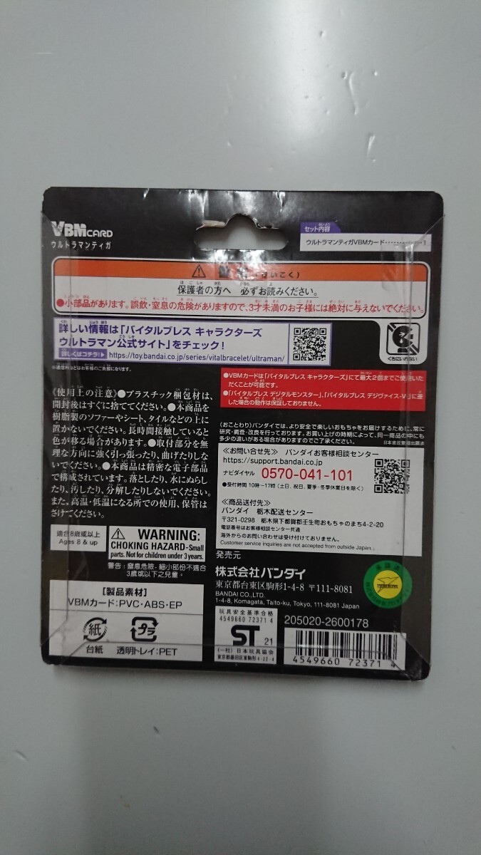 バイタルブレス VBMカード ウルトラマンティガ新品未開封 です。多少保管キズあります。発送は定形内180円サイズです。