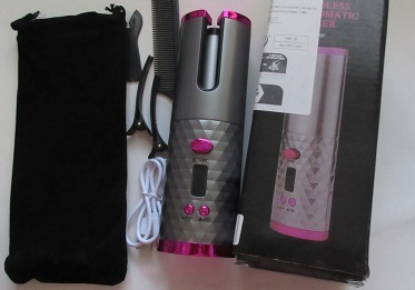 液晶画面で設定、ボタンを押して髪の毛引っ掛け待つだけで、カールができるそうです。 ベロアぽい素材のポーチ・ヘアクリップ、充電コード、くし も付属で入っています(ケースは届いた時にシールなど貼っていました) 〔他にも色々出品中です☆よかったらご覧ください〕