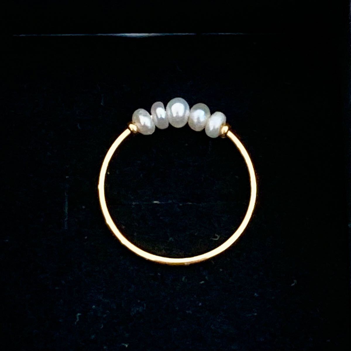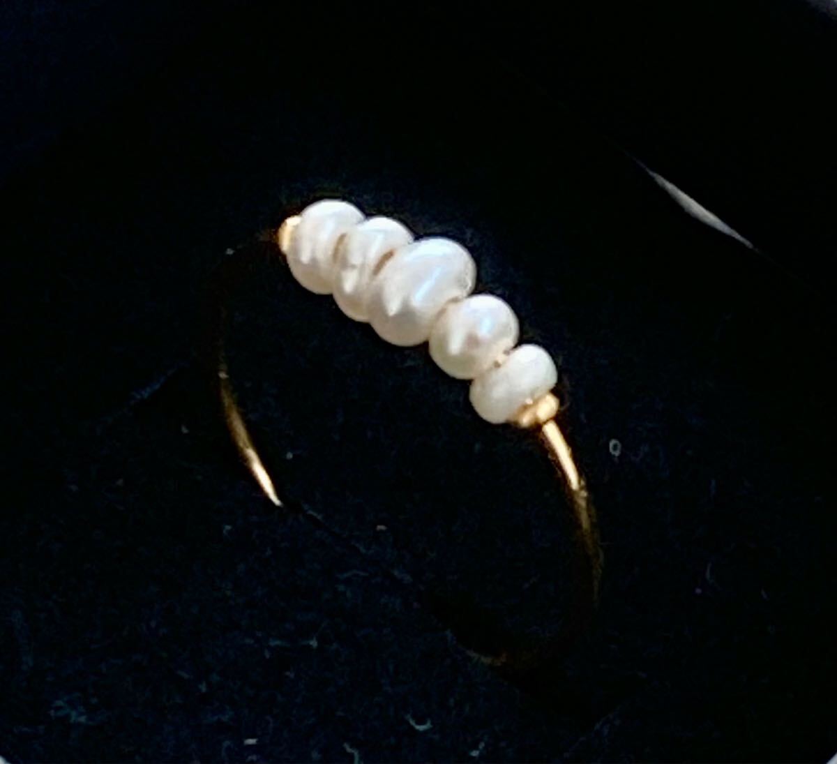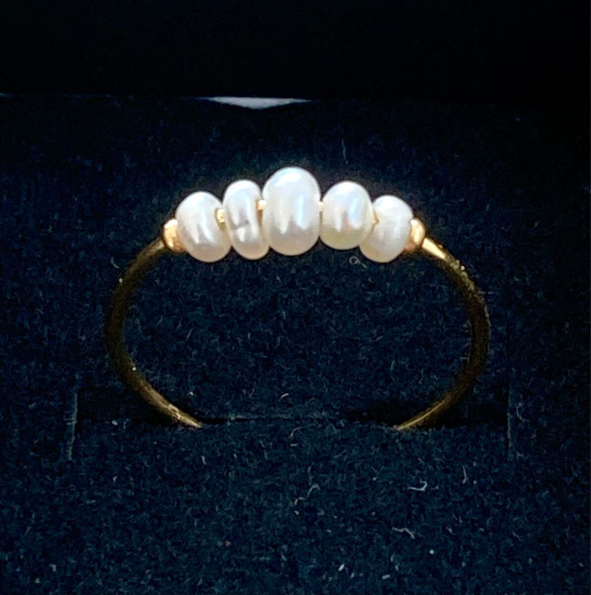 シンプルなゴールドバンドに5つの淡水パールが配置されたエレガントなリングです。| 出价者 | 信用 | 价格 | 时间 |