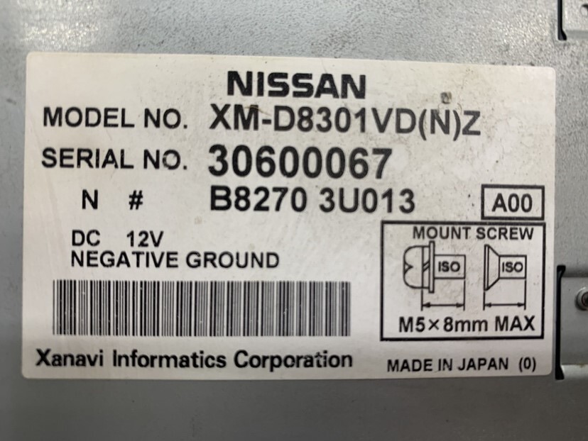 | 商品情報 | この商品は八街営業所の在庫です。 | こちらの商品は | ジャンク | です。 | 商品状態は | F | ランクになります。 | | | 区分 | | | メーカー | Xanavi ザナヴィ | | 商品名 | DVDナビユニット リモコン付 ジャンク扱い | | 品番 | XM-D8301VD(N)Z B8270-3U013 | | コンディション | 状態 | 詳細 | S | 新品未使用品で付属品が全て揃っている状態 | A | 使用頻度が少なく、とても綺麗な商品 | B | 多少の使用感があるが、全体的に綺麗な商品 | C | 不具合は無く、使用可能な商品 | D | 破損や故障が多少あるが使用は出来る商品 | E | 破損や欠品があり、補修が必要 | F | 完全ジャンク品、車種不明 | | | 状態詳細 | 動作確認を全くしておりません 見た目通りの為Fランク 完全ジャンク扱いです シリアルナンバー 30600067 | | | 適合車種 | | メーカー | - | | 車種名 | - | | 型式 | - | | 類型 | - | | 備考 | - | | | ご用意頂くお支払い代金について | こちらの商品サイズは>Bです。