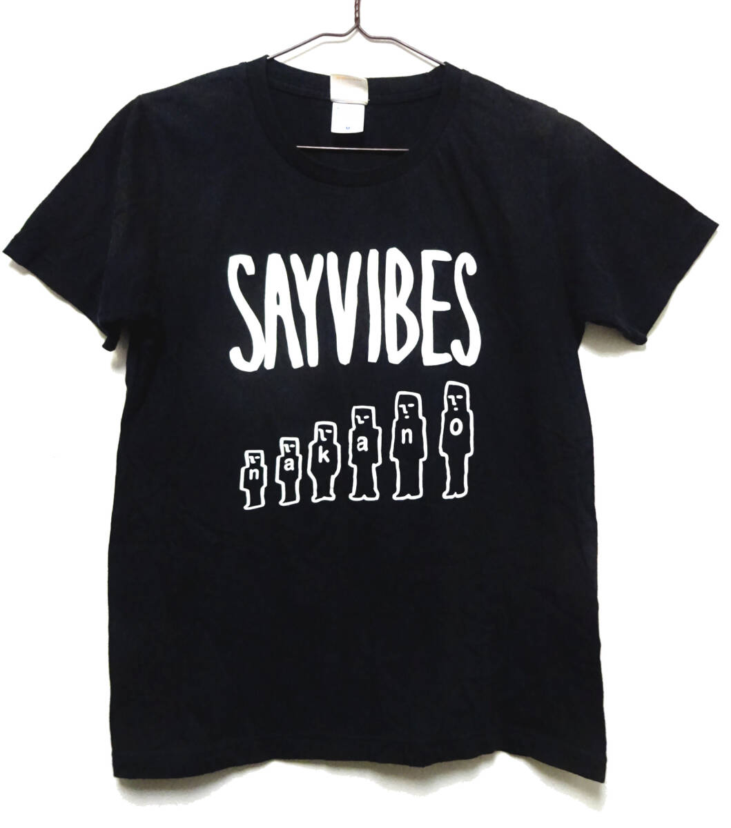 | カラー | ●ブラックの地に、フロント、胸にあたりにSAYVIBES とホワイトでプリントされ、その文字の下には人の形の中にn,a,k,a,n,o の文字がプリントされています。 |