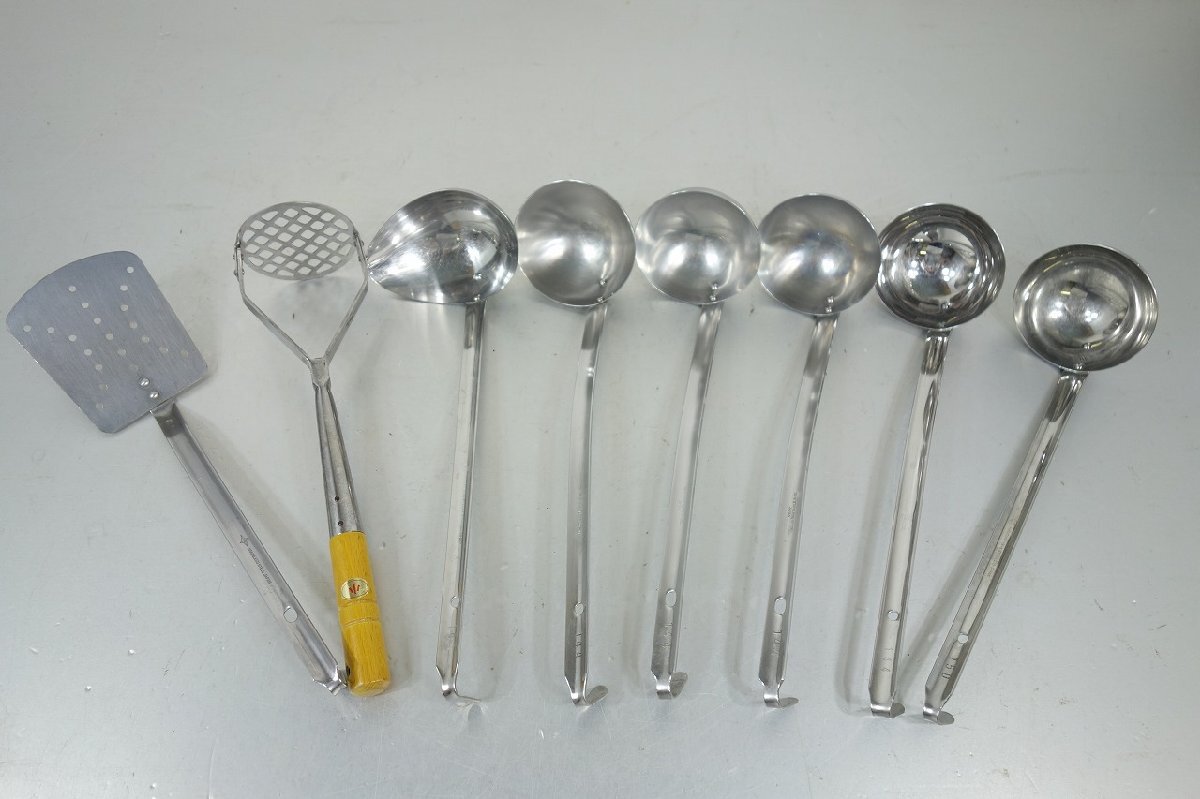 商品詳細 | 全8点 キッチンツール お玉 玉じゃくし レードル フライ返し ポテトマッシャー の出品となります 写真にあるものがすべてとなります お玉 144㏄ 3点 150㏄ 2点 レードル 144cc 1点 フライ返し 全長:33cm 幅:9cm ポテトマッシャー 全長:31cm 径:8cm *木製持ち手部分にゆるみ有り 中古品となりますので汚れ、使用傷、変色がございます 中古品になりますので相応な使用感が御座います 管理番号 A-71 |