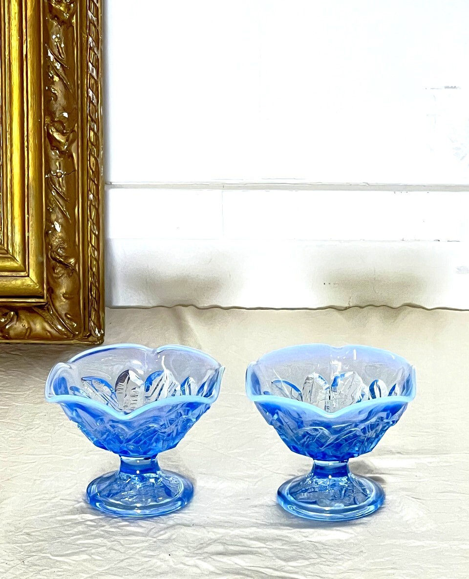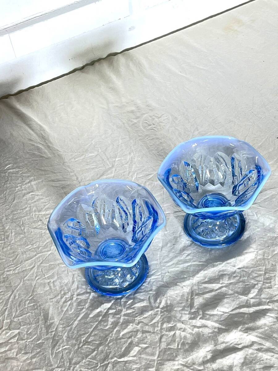 | M3069【昭和レトロ★2個セット】パフェグラス ブルー デザートカップ かき氷コップ アイスクリームグラス カフェ 大正ロマン | |