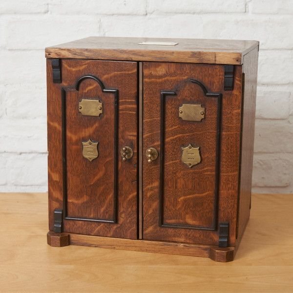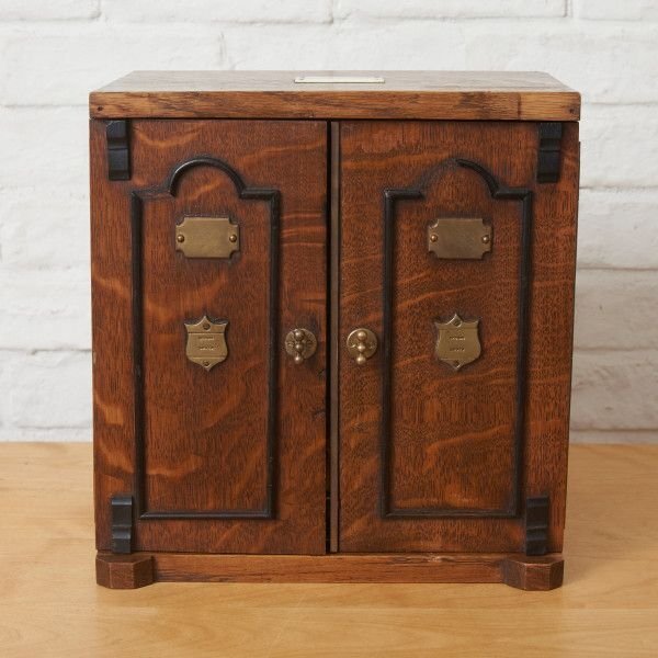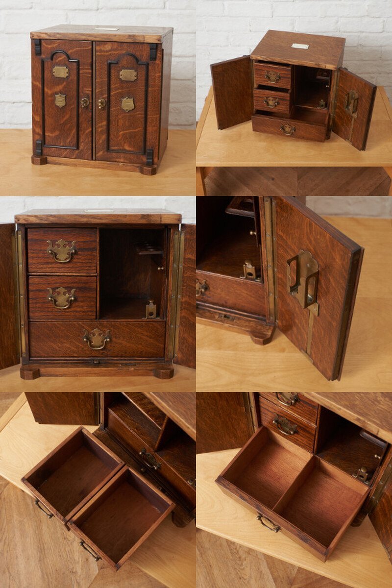 1910年に記念品として作られた小ぶりのキャビネット。扉の内部には小物やアクセサリーなどを収納できる引き出しが備わり、扉を開けたままでも様になる上品な佇まいです。アンティークならではの心地よい温もり、程よく古びた風合いが素朴で優しい雰囲気を演出します。