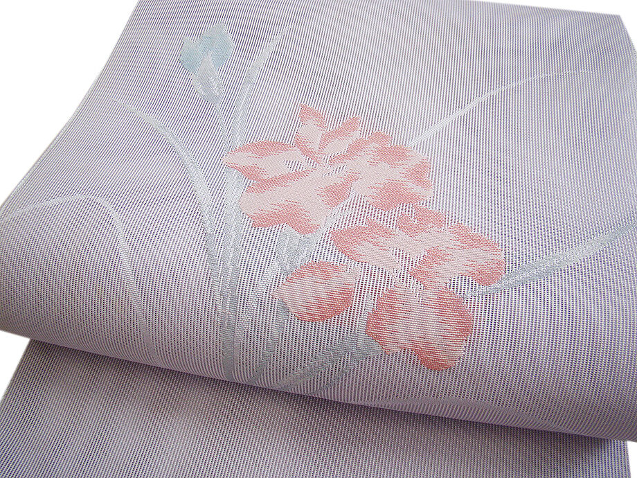 鴇鼠色地に花草柄の織柄がお顔映りも上品な帯姿を奏でております。
