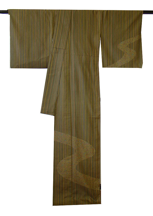 ※帯や小物次第で様々な表情を演出できる絶妙の地風が着物通の心を虜にし、 洒落心を満たす小粋な雰囲気漂う粋な紬の単衣の訪問着です。 旅館や料亭の女将さんにもピッタリ映える秀逸品です。 お召しになる幅広く、観劇や同窓会、お食事会、街着等にもお召し頂きたいものです。 40代~70代迄幅広く着用出来ます。 身長158cm~165cmの貴女に最適です。 |