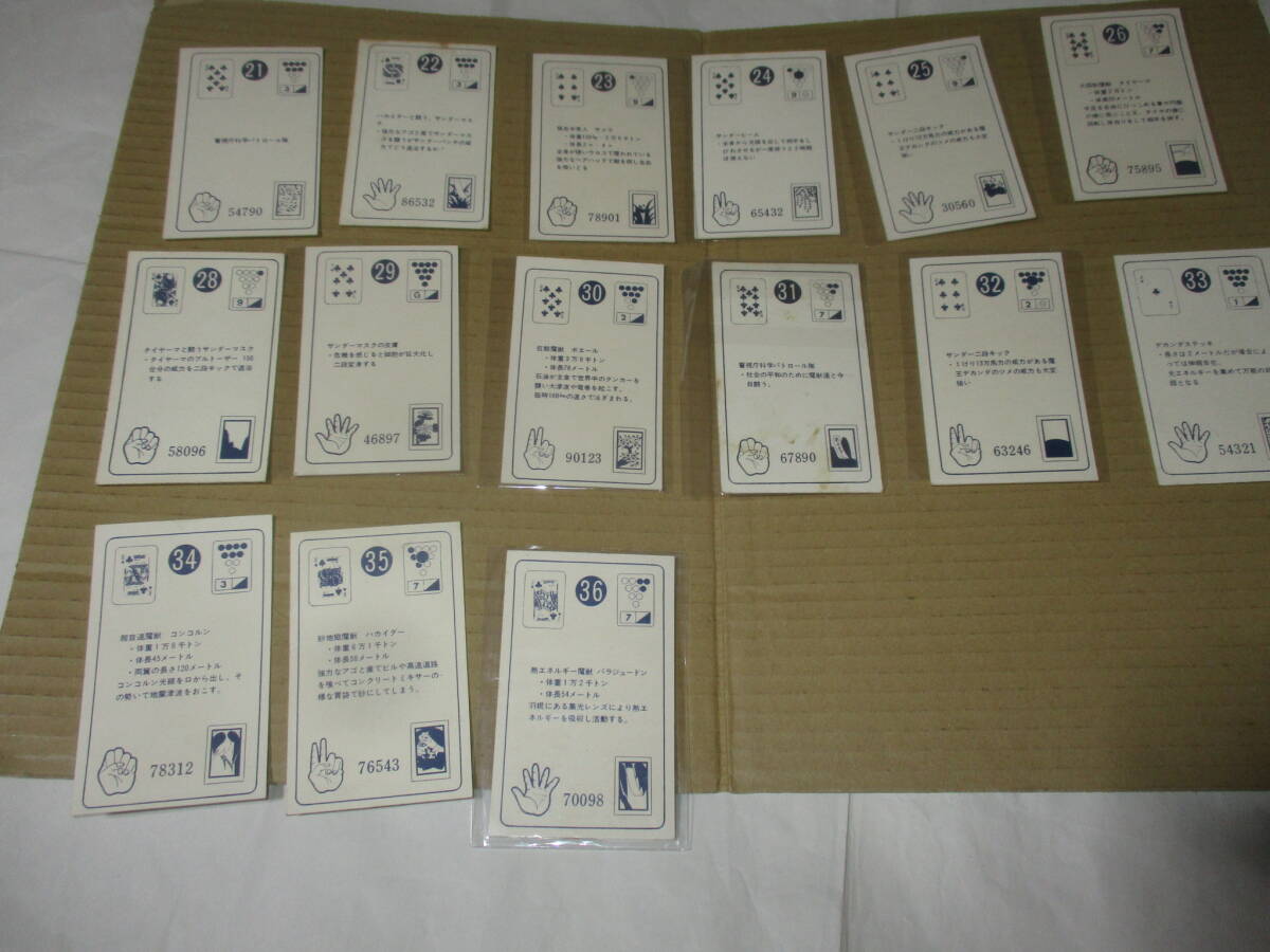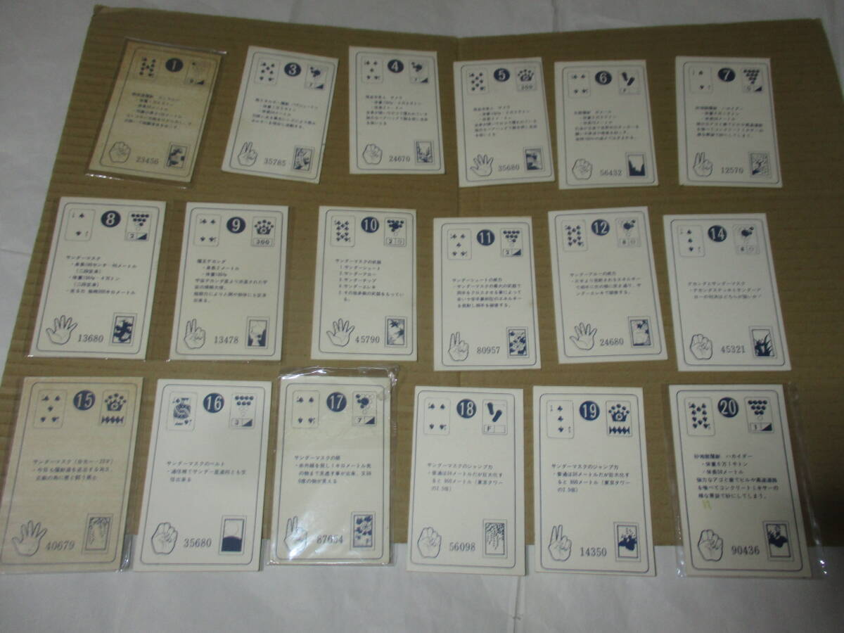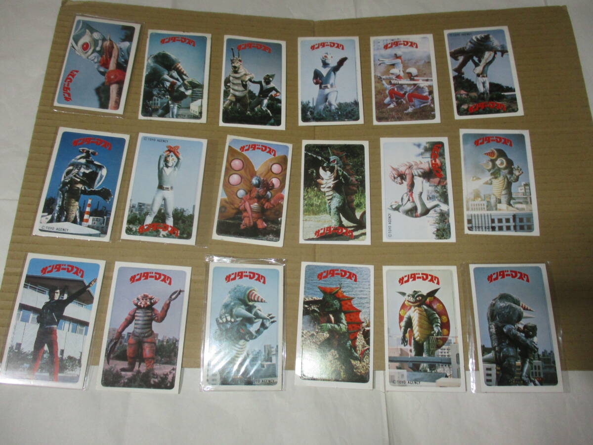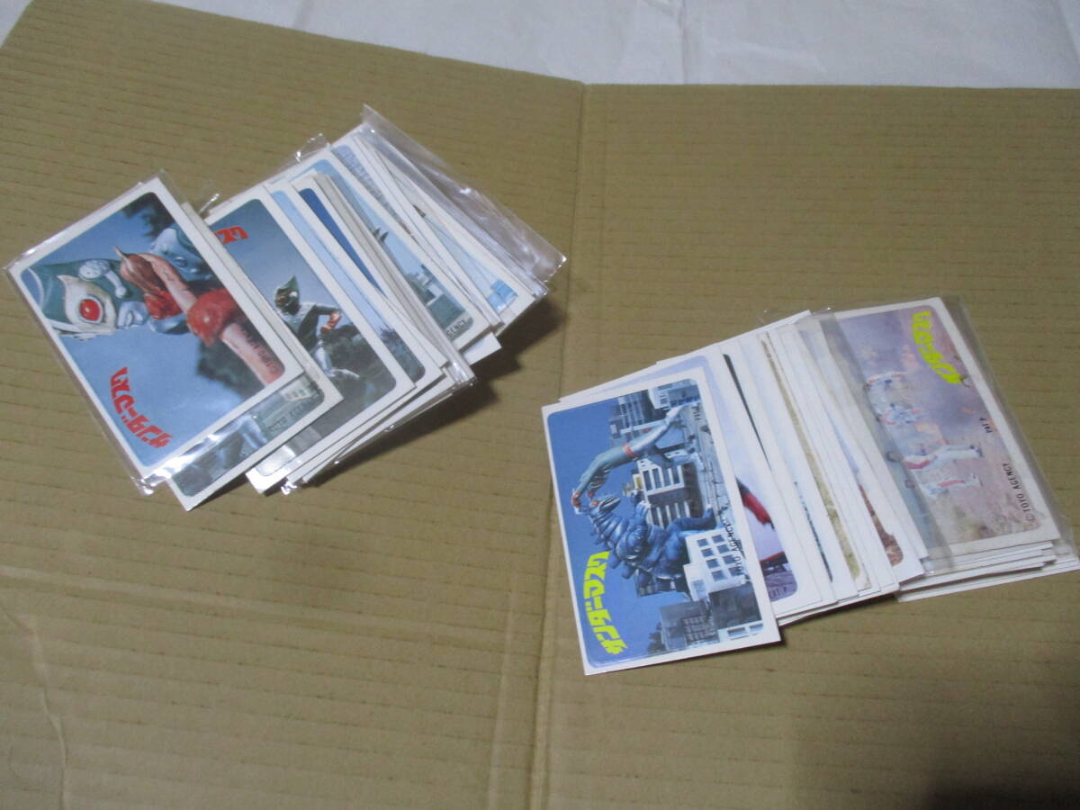 | 商品説明 | シール付き第1弾33種第2弾29種です。 第1弾1-36、第2弾37-45,55-63,73-81,91-99の全72種です。 第2弾の番号のとびにはウルトラマンと笛吹童子がラインナップされていました。 シール付きとなしで絵柄が違いますので全144種集めなければならずまさに地獄です。 ベンバーン、ザリバザーン、ドロドロンの絵柄はシール付きにしかありません。 デッドストック開封の良好品から角の小さいしわや裏の汚れがあるものや シールをめくった形跡のあるものや枠部分が傷んでいるものまで状態は様々です。 57はかなり傷んでいます。このシリーズは必ず57に泣かされます。 裏面が黒くなったものもありますがこれは未開封品でも起こる現象で 経年変化と思われます。また袋がぺらっぺらのビニールなので 箱の中で重なった際の圧迫で表面にホチキスの形をしたへこみ跡のあります。 上記理由により状態に対しある程度妥協ができない方には不向きです。 なお最終画像の袋は参考画像です。譲渡品に含まれません。 20年近く前関西の有名専門店で第1弾のデッド品を売っていただきました。 常連にサンダーマスクの偏執的かつ圧力団体もどきのマニアがいる中で特別に、、 という具合でしたが開けてみるとわずか6種しか入っていませんでした。 袋はホチキス1か所とめのみで上が密閉されておらず中身が余裕で覗けるため 後に関係が悪化した際あの時種類すくないの分かっててまわしてきたんだろなと 妙に納得してしまいました。何かこじれるとその相手にかかわることすべてを ネガティブな視点で見てしまうのは禁忌行為なのですが、、人間業が深いです。 |