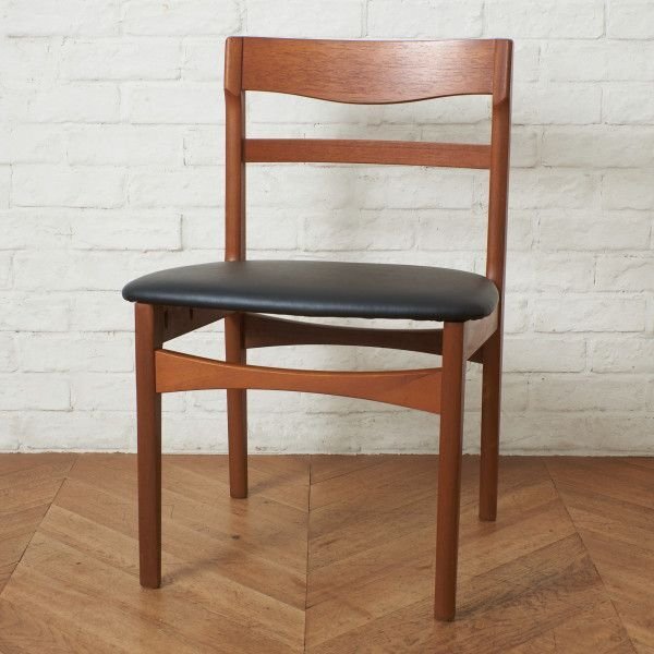 洗練されたフォルムが美しいダイニングチェア。背もたれの緩やかなカーブが絶妙なフィット感を生み、快適な座り心地を実現しています。実用的でありながらも作り手のこだわりを感じさせる、上質なヴィンテージファニチャーです。