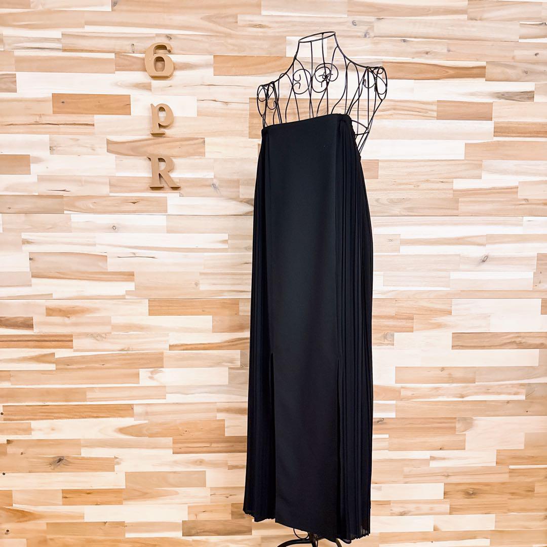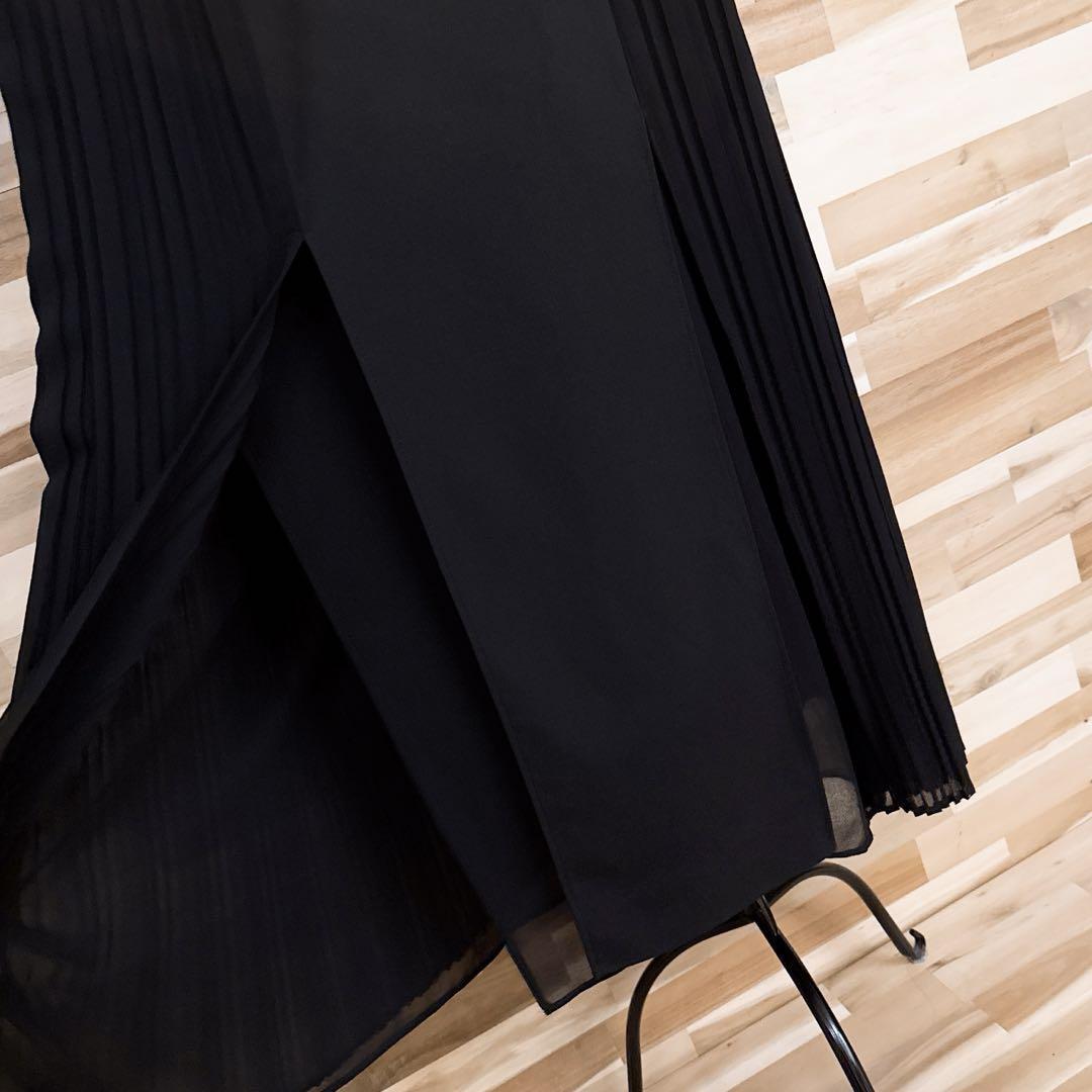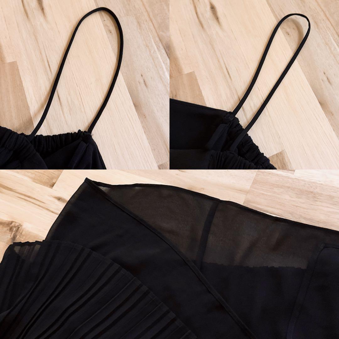 * キャミワンピ *深みのあるブラックが落ち着いた印象を与えながら、両サイドに広がる細やかなプリーツが動きに合わせて流れるような陰影を描く一枚。センターのスリットから覗くプリーツが奥行きを生み、大胆に開いた背中と細身のストラップですっきりとしたシルエットが大人オシャレなZARAのワンピースです。※LGスタイラーにて除菌リフレッシュ・スチームクリーニング済みです。