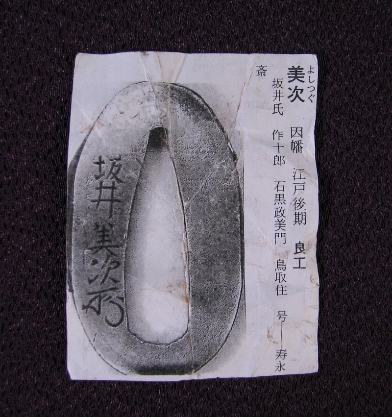 | 商品説明 | 時代:江戸期 在銘で作の良い鍔です。詳しくは画像にてご確認下さい。何卒よろしくお願い致します。 |