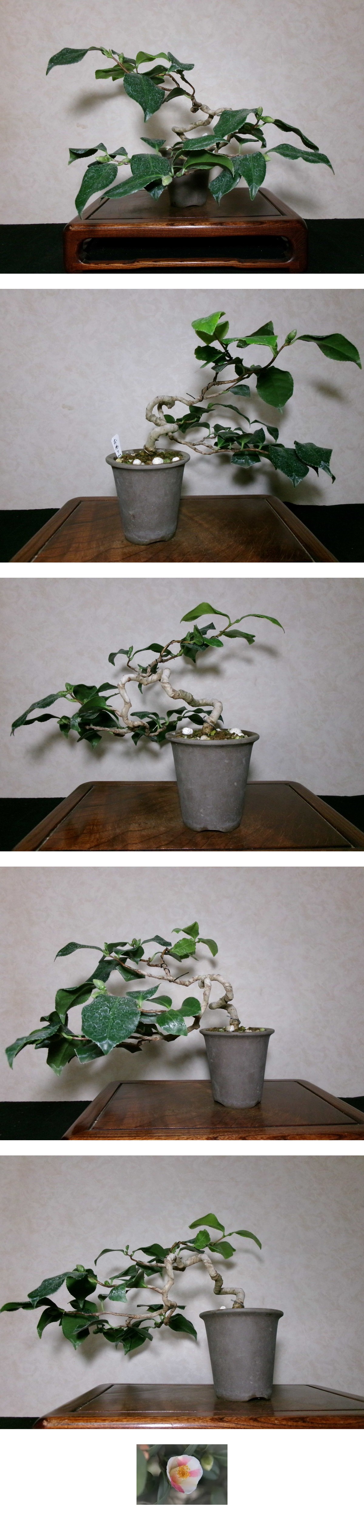 超希少 古木感上々 展示にも 椿 尾張五色 風情ある文人調の半懸崖仕立て 持込の小品盆栽 樹高23センチ(地際から14センチ) | |||||||||||