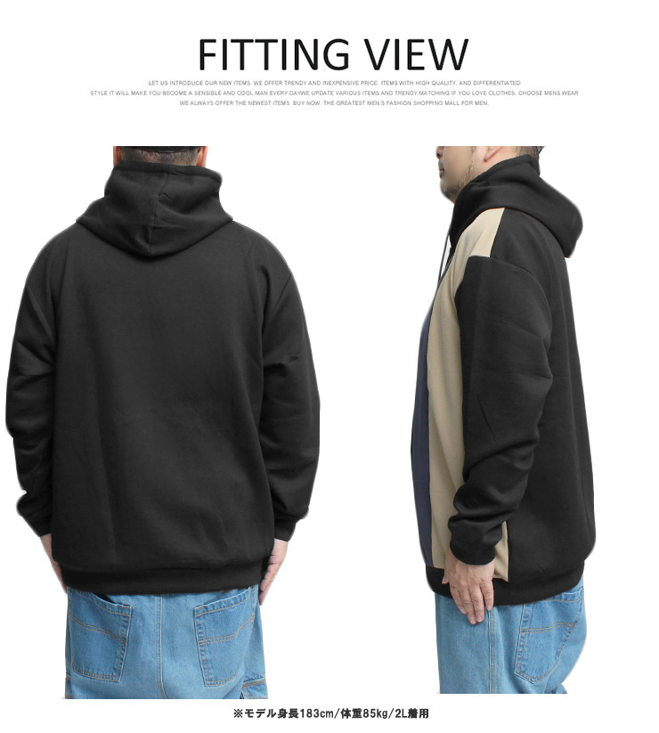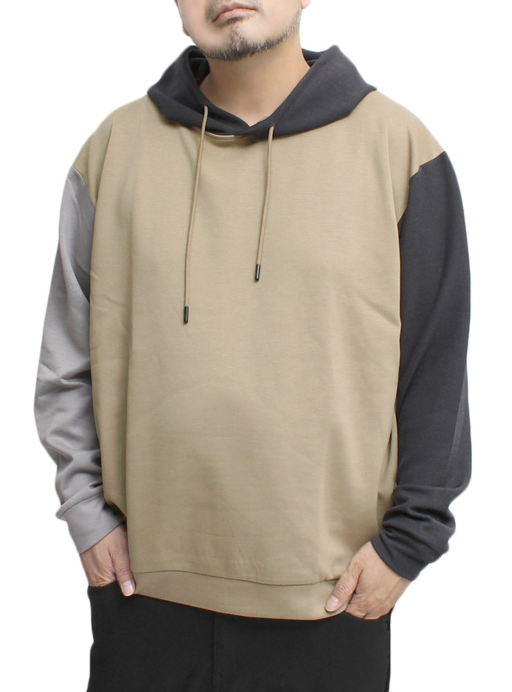 | 商品名 | 【新品】 5L ベージュ パーカー メンズ 大きいサイズ プルオーバー 切替 クレイジー デザイン ソフト ダンボール ストレッチ ドライ スウェット |