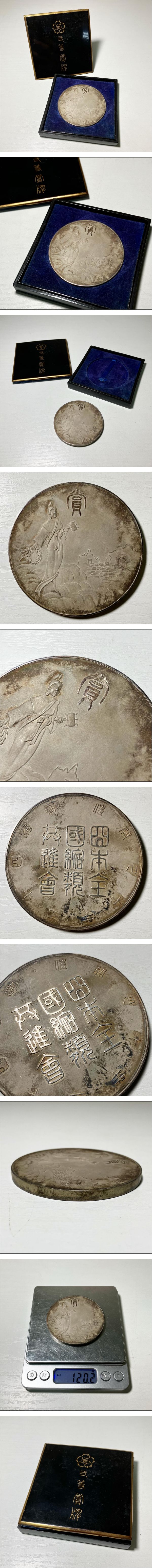 商品説明 | 京都⑥ 時代物 二等賞牌 銀牌 日本全国縮類共繊会 明治四十二年 箱付 本品は時代物として出品しております。 京都市中京区の一軒家整理品です。 中には古いものも多数ございますので写真にてご確認ください。 外観は時代物となりますので多少傷、汚れ等がございます。 できるだけ写真を撮っておきましたのでご確認ください。 付属品 ・写真に写っているものが全てとなります。 サイズ 直径:6.4cm 重量:120g 毎日新しい商品を出品しております。 骨董品は全て京都の初だし品となります。 |