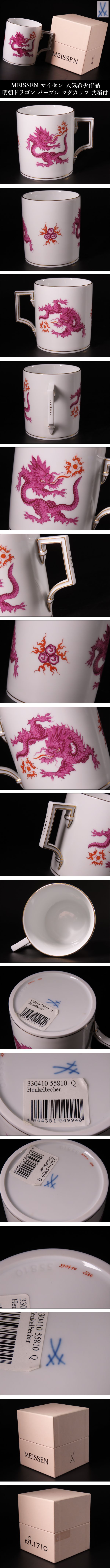 【ONE'S】MEISSEN マイセン人気希少作品 明朝ドラゴン パープル マグカップ 珈琲碗 辰 龍 共箱付 西洋美術 | |||