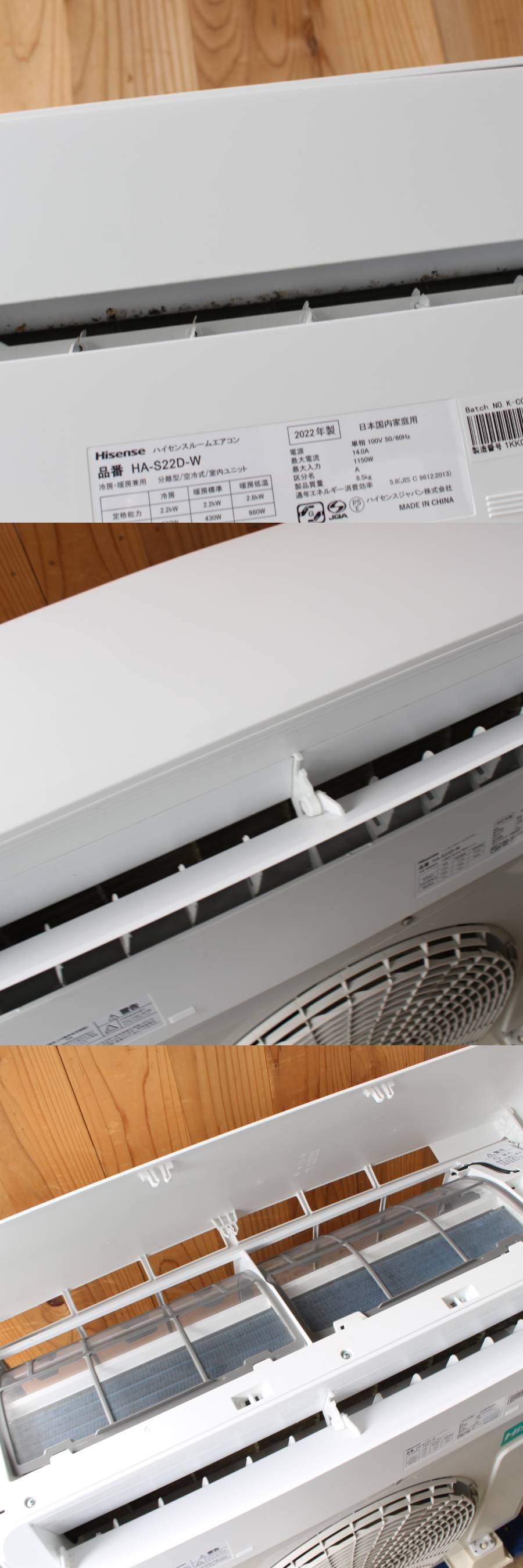 【動作確認済】 参考ページ 「解凍洗浄」と「内部クリーン」のダブルクリーンシステムを搭載したエアコン、Sシリーズの2021年モデル(おもに6畳用)。 室内機の熱交換器を-19度に冷やし、周囲の水分を付着し凍らせた後に一気に溶かす「解凍洗浄」を搭載。熱交換器のカビや臭い、油汚れ、ホコリを洗浄。 「内部クリーン」運転によりエアコン内部を乾燥させ、カビや臭いの発生を抑制する。「自動立体気流スイング」で部屋の温度をムラなく均一に保つ。 ■サイズ■ 室内機サイズ幅780x高さ282x奥行236mm 室外機サイズ幅660(+92)x高さ530x奥行275(+50)mm ()内は突起物の寸法です。 室内機重量8.5 kg 室外機重量22 kg ■内容■ 画像に写っている物が全てとなります。 ■状態■ 室外機のフィンのカバーに割れがございます。 その他は小傷・擦れ・汚れなどの使用感がございますが、大きなダメージはございません。 手の届かない内部やファンにカビ汚れがございます。 画像にてご確認ください。 ※簡易清掃済です。手の届かない清掃箇所はご了承ください。 ※フィルター水洗い⇒乾燥⇒取り付けをしております。 ※ポンプダウンを行っております。 ※ガスの残量につきましては、わかりかねます。 ■動作保証■ 動作不良が確認された場合には、商品到着後1週間以内にご連絡いただけました場合に限り、返金や返品などの対応をさせていただきます。 商品を受け取りましたら動作確認をお願い致します。 ◇◆◇直接取引大歓迎♪◇◆◇ 川崎市宮前区犬蔵(当店)にて直接取引可能となっております。 完全予約制となります。落札後、ご希望の日時をご指定ください。 ・ランク 【B-C】 S:新品 N:未使用品 A:使用感が少なく、状態の良い商品 B:使用感はあるが、傷や汚れの少ない商品 C:使用感の他、傷や汚れが見られる商品 D:大きな傷みがある商品、難あり商品 E:ジャンク品(壊れている物)、動作未確認など |