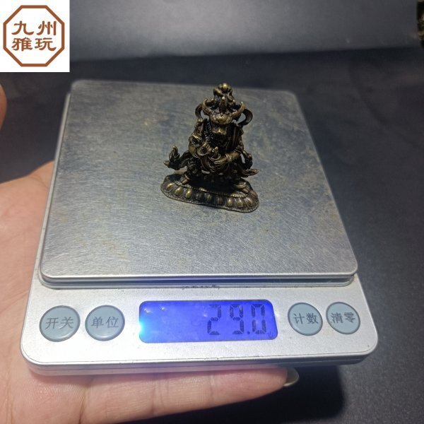 チベット伝承のリマ銅仏像、(悪を調伏する力: 閻魔を倒すほどの強い力を持つ)護法神像大威徳金剛護法、お茶の遊びアイテム