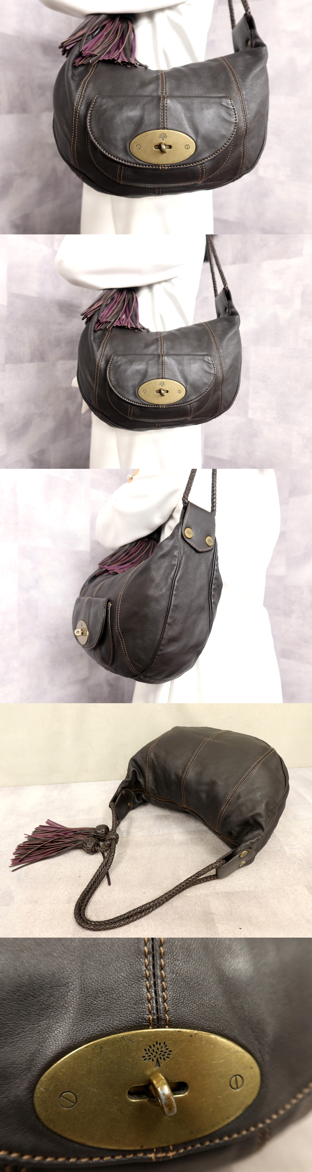 ●超美品●MULBERRY マルベリー●Araline●タッセル●カーフ レザー 本革●ホーボー ショルダー バッグ●ダークブラウン●肩掛け●Js61951 [浏览原始页面]