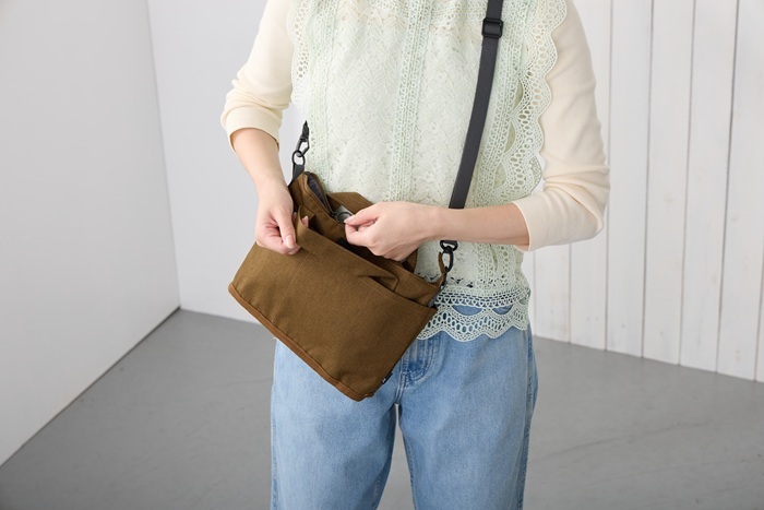 | 商品説明 | ・・ちょっとそこまでの、身軽なお出かけに便利。スマホやウォレット、A5ノートなどが収納可能。 ・口元はファスナー開閉で、安心なつくりです。 ・スリムな底マチながら、安定して自立するよう工夫された底面。自立するからモノの出し入れがスムーズ! ・取り外し&長さ調節可能なショルダーベルト付き。ショルダーベルトを外せば、ミニトートバッグとして、またバッグインバッグとしても使用可能。 ・正面、背面それぞれに2つに仕切られたルーポケット付き。出し入れ頻度の高いアイテムの収納に便利です。 ・お出かけを心地よく。毎日使うほどに、“グッドデザイン”を実感できます。 |