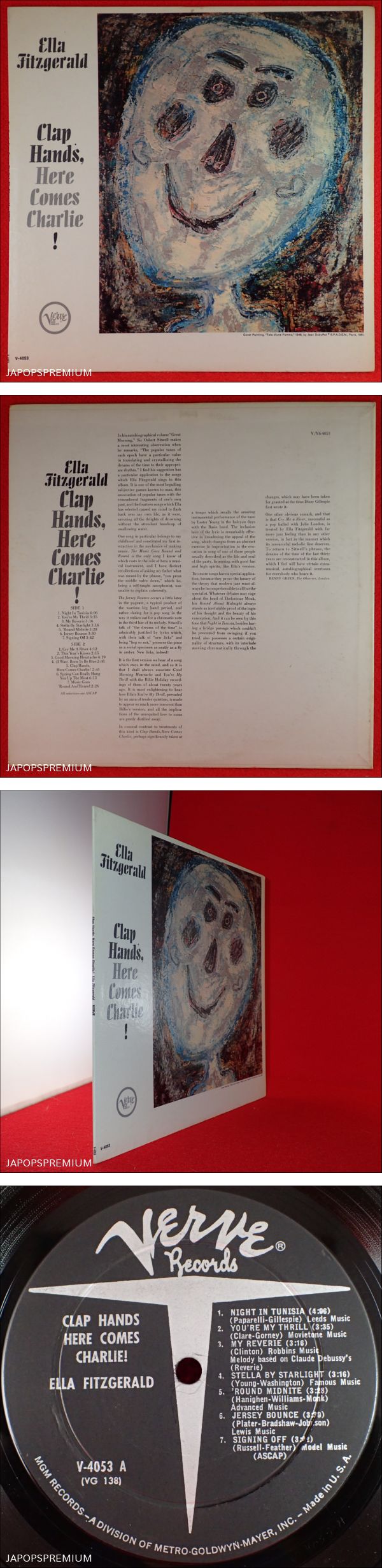 | ★★洗浄済みのレコード盤のご愛顧に感謝申し上げます★★ ★☆☆低額スタートのイベント☆☆千円開始オークション! ★千円開始オークションですが超音波洗浄マシンによる簡易な洗浄サービスを実施! ★完璧な搬送保管を可能にする専用部材を使用した万全安心な納品実施 ★決済時から24時間以内のスピード発送実施! ①11/9~11/11開催オークション!発送は開催最終日翌日以降発送 ②ご連絡は必ず落札時から24時間以内厳守(上記期間内に複数のご落札がある場合はその旨のご連絡が必要です。無い場合は落札者責任のキャンセル実行) ③お支払い期間は最終落札時から24時間以内厳守(最終オークション終了後即決済希望) ④上記開催期間内に複数のご落札がある場合は必ず「まとめて取引依頼」をご活用下さい ⑤スピード発送するため、上記期間以外の取り置きはいかなる場合も一切不可 ⑥やむを得ない事情でオークション開催スケジュールに変更が生じた場合、オークション終了前に新規ID等によるいたずら入札があった場合は、オークション終了前に出品を取消す場合があります ★★★★★★★★★★★★★★★★★★★★★★★★★★★★★★★★★★★★★★★★★ ☆☆☆こちらの商品は千円開始オークションですが、超音波洗浄マシンによる簡易な洗浄サービスを実施!さらにスピード発送! ELLA FITZGERALD/Clap Hands, Here Comes Charlie! (★ギガレア★US完オリ★VERVE★T字ラベル★両溝★神洗浄) 出品品は、女性ボーカル御三家の中でも別格の存在感と実力派ELLA FITZGERALDの絶頂期の名盤、Clap Hands, Here Comes Charlie! USオリジナル、VERVE、T字、両溝の完全オリジナル!最高音圧! 1961年作品で、絶頂期の彼女のボーカルのみならず、バックのスウィングカルテットの演奏があまりにも素晴らしい作品! 特に、LOU LEVYのピアノ、HERB ELLISのギター、STAN LEVEYのドラムの3者の阿吽の呼吸の名演に心酔必至! 単なるボーカル作品を超越したVERVE屈指のジャズ名盤! <パーソネル> Ella Fitzgerald (vo) Lou Levy(p) Herb Ellis(g) Joe Mondragon (b) Stan Levey(ds) ★LOU LEVY、HERB ELLIS参加によるVERVE屈指のジャズ名盤 アメリカ オリジナル廃盤 VERVE V4053 MONO T字ラベル 両溝 コンディション (ジャケット//盤) 千円開始の低額スタート放出品 (全体外観のコメントのみ) ★こちらの商品は、千円開始で、放出品扱いにて出品しておりますので詳細評価はありません。 千円開始品の評価については、低額スタートの放出品のため詳細評価は実施しておらず、距離を離しての全体外観のおおまかな目視コメントのみで、視聴や細部の詳細な確認はおこなっておりません。 針飛び・ループ・ノイズ等の盤面状況を理由とする返品、ジャケット不良を理由とする返品は一切受け付けておりませんので、必ず、その旨をご承諾のうえで、ご入札ください。 なお、全曲を試聴して細部まで音質精査をおこなったレコードをご希望の方は、私どもの10000円以上でスタートする高額品オークションの中から、必ず、ご検討をよろしくお願いいたします。 <ジャケット> 外観全体コメント 千円開始の低額スタート放出品 ※紙質かたく、つくりはしっかりとしていて、張りがあり、表面光沢見事。割れ・裂け・抜け・落書きのない上位のコンデイションです。 ★その他は必ず写真をご参照ください★ ★あくまでも正面からのおおまかな外観目視コメントのみなので。複数掲載した写真を必ずじっくりとご参照ください★ (こちらの商品は、千円開始の低額スタート放出品になりますので、ミントレベルの極美レベルのジャケットコンデイションは、ほぼ存在しません。また、詳細評価はありません。距離を離しての外観に対するおおまかな目視コメントのみであり、ジャケットを細部までを精査した評価ではありませんので、ノークレームノーリターン条件でのご入札となります。千円開始の格安放出品はいかなる場合にも返品対応は一切応じませんので、神経質な方のご入札はお控えください。) <盤> 外観全体コメント 千円開始の低額スタート放出品 (全体外観のコメントのみ) ※SIDE1 盤面光沢見事、サーフェイスの超薄い微スレがあります ※SIDE2 盤面光沢見事ですが、サーフェイスの薄い微スレがあります (こちらの商品は、千円開始の低額スタート放出品で出品しておりますので、ミントレベルの極美状態はありません。盤の状態等により、ノイズ・針飛び・ループ等が発生することもあり得ます。また、こちらの評価はレコード盤全体を距離を離して見た、あくまでもおおまかな目視コメントのみで、放出品扱いなので詳細評価はありません。試聴評価や盤面の細部を精査した評価では一切ありませんので、針飛び・ループ・ノイズ等による返品は一切応じません。ノークレーム・ノーリターン条件でのご入札となりますので、必ず、その旨をご承諾のうえで、ご入札ください。) ※70年代後半から、将来の廃盤ブームを予見、英米現地で選りすぐって購入、東京自宅(現物私有)にて永代完全保管しているわたしどもな