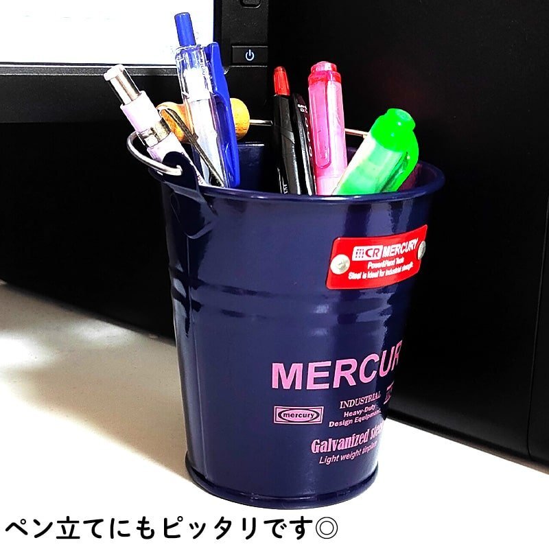 「マーキュリー タブバケツ ネイビー」 定番のブリキバケツのミニバージョンです。 レジ周りの小物入れや、カフェの小物をまとめたり使い方は様々です。 使い勝手抜群で、カラバリも豊富なので便利にお使いいただけます アメリカンな雰囲気漂うデザインは、インテリアとしても非常におすすめです。 プレゼントにもいかがでしょうか? |