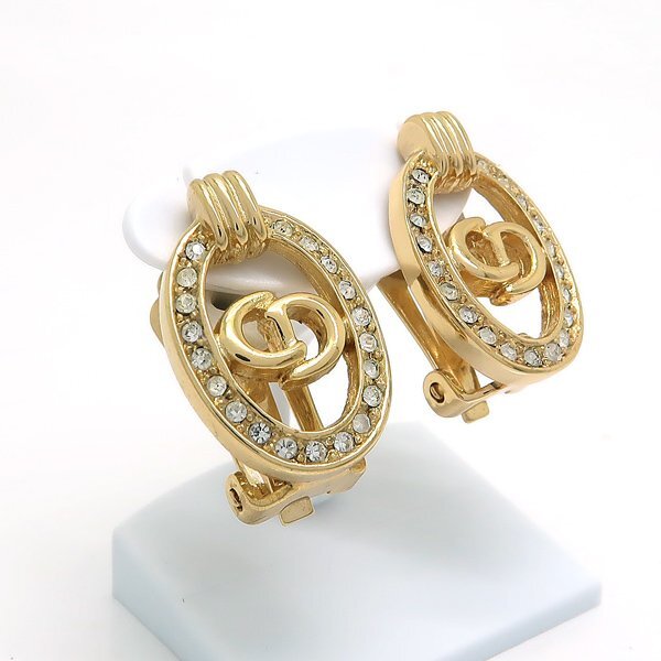 Diorロゴオーバル型イヤリング 素材 :GP・クリスタルガラス サイズ:約W14.1×H21.4mm 重さ :約7.4g(ゴム含む) 状態 :AB-B スレ・くすみ等の使用感がございますが、まだまだお使いいただける商品です。 |