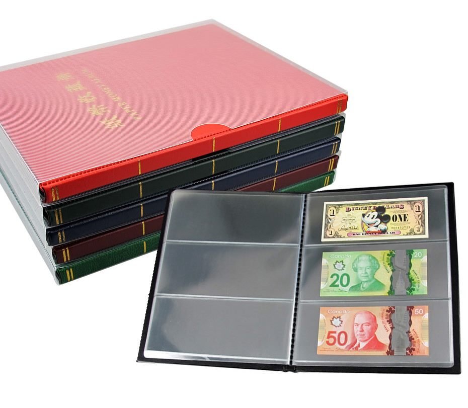 紙幣アルバム 透明リーフ/3段片面/20ページ/60枚収納/4色仕様 アルバム/カバー付 収集ワールド