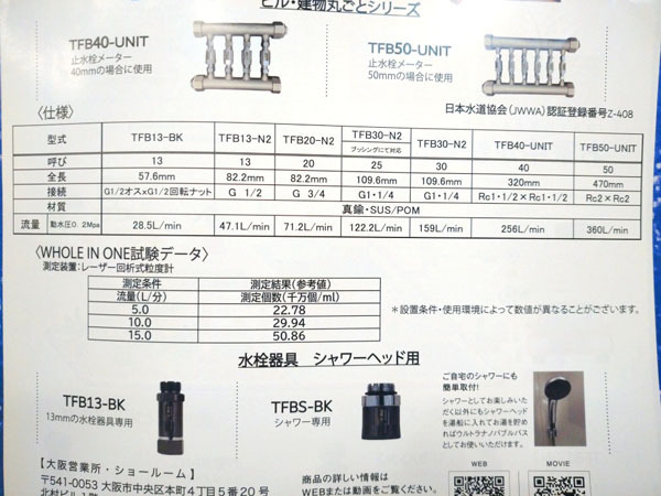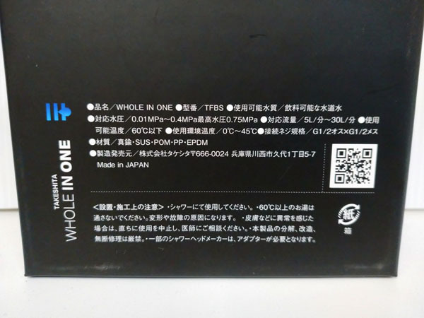 | 規格・仕様 | 使用可能温度:60℃以下 使用環境温度:0~45℃ 対応水圧:0.01~0.4MPa 最高水圧:0.75MPa 対応流量:5~30L/分 接続口径:G 1/2オス×G1/2メス |