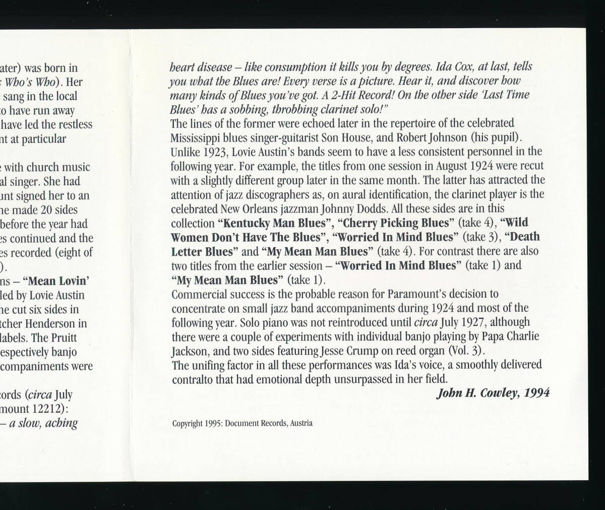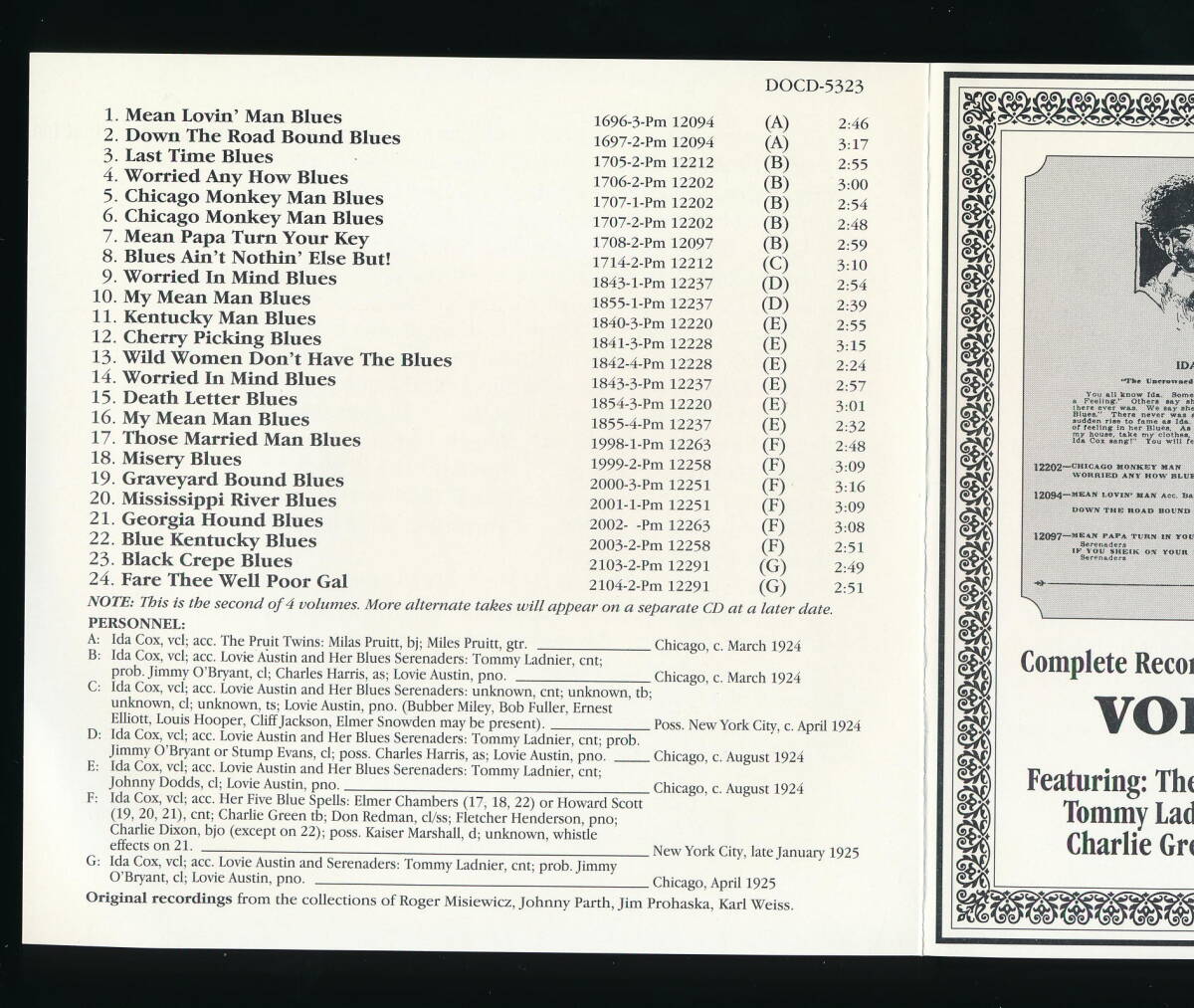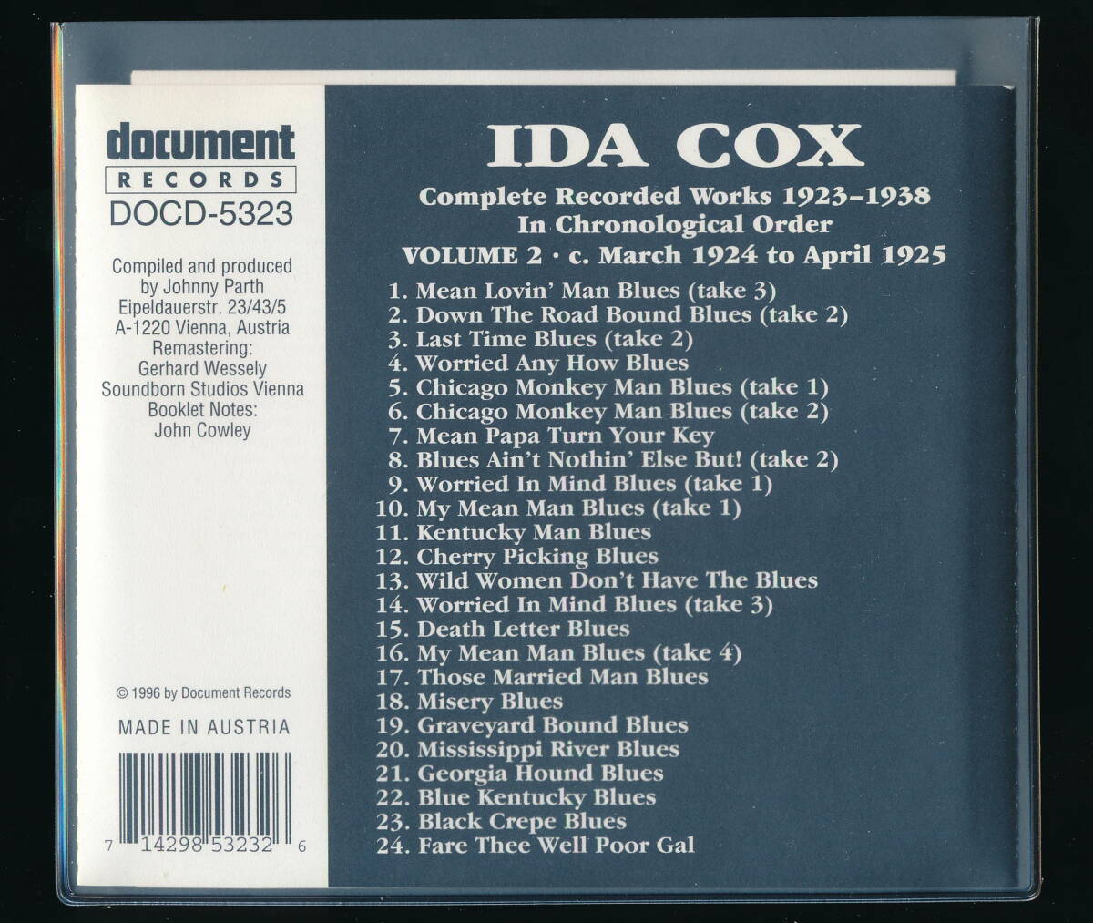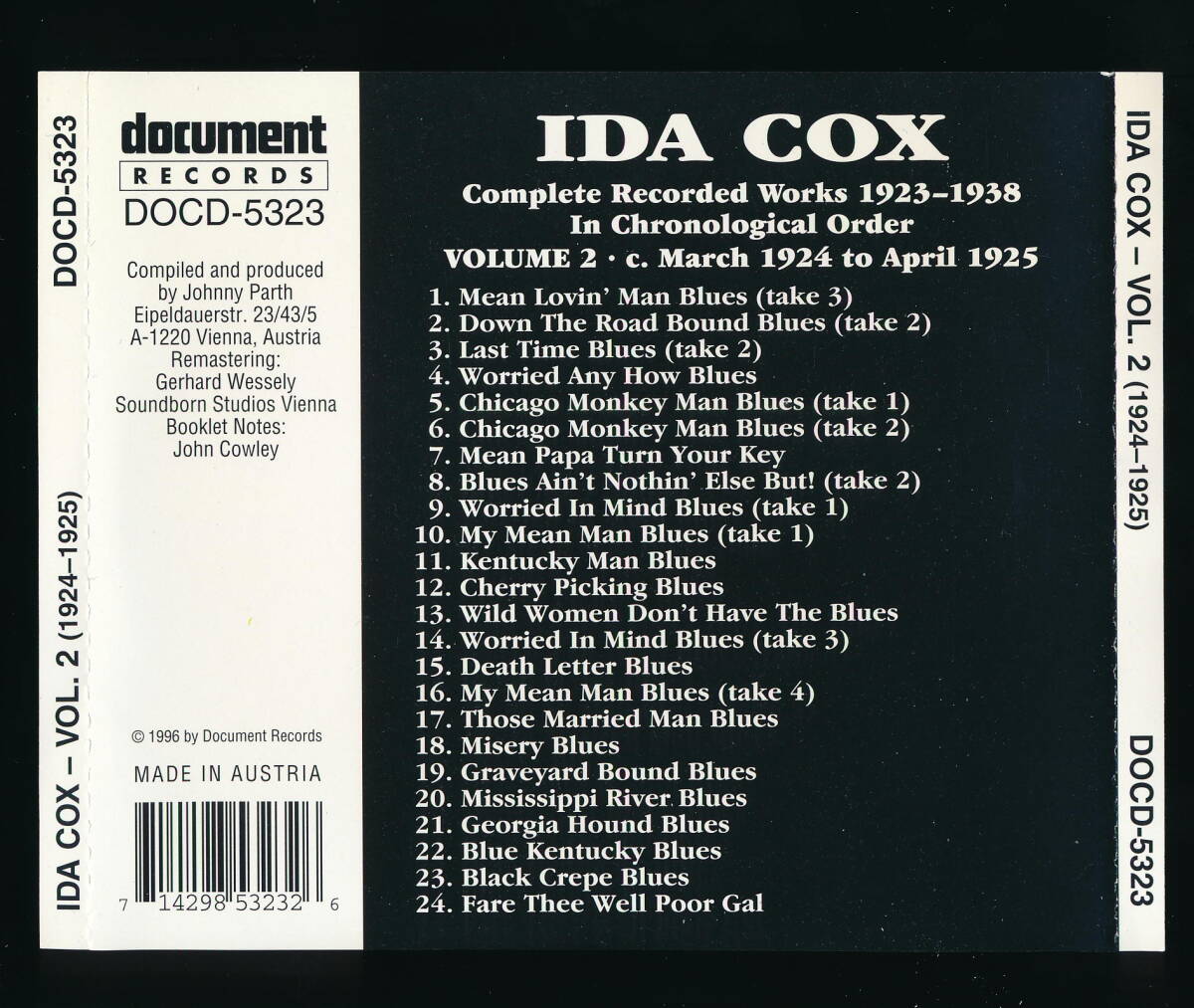 ☆IDA COX☆COMPLETE RECORDED WORKS 1923-1938 VOLUME 2 (1924-1925)☆1995年輸入盤☆DOCUMENT DOCD-5323☆
