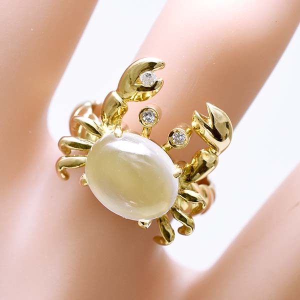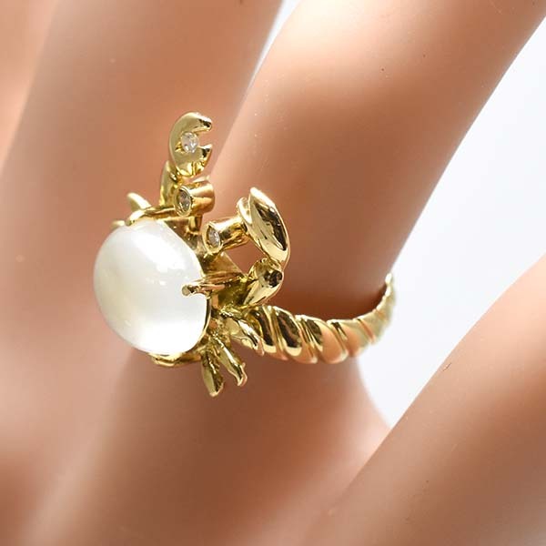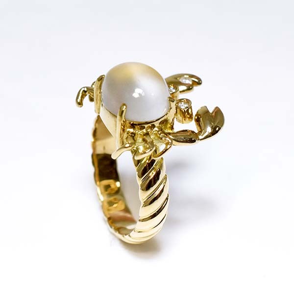 かに座の誕生石ムーンストーンをおなかにセットした18金イエローゴールド製のファッションリング。| 商品詳細 | |||||||||||||||||||||||||||||||||||||