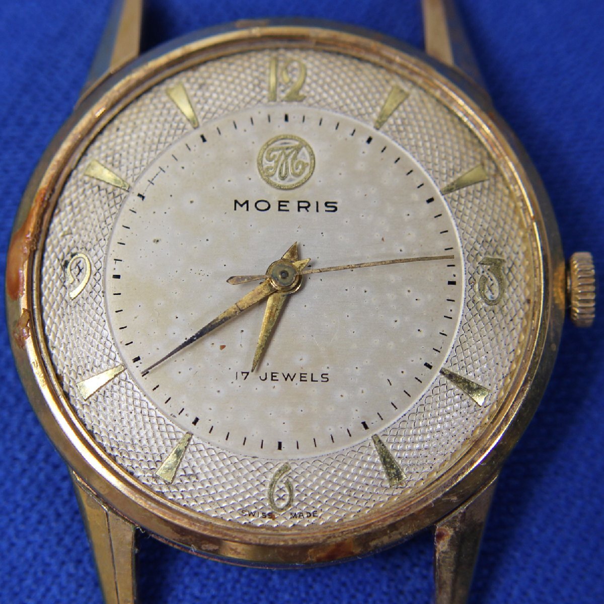 | 代理出品です。 60年ほど前に祖父が使用していた機械式時計です。30年前に風防のガラスが割れて以来暗所保管となっていました。 現状では風防がありません。 リューズを巻くと秒針が動きます。1段引いて時刻の設定も可能です。 時計のサイズは33ミリ、リューズを含めると35ミリでした。ラグ幅は17ミリでした。 状態は画像でご判断ください。 現状でのお渡しとなります。 |