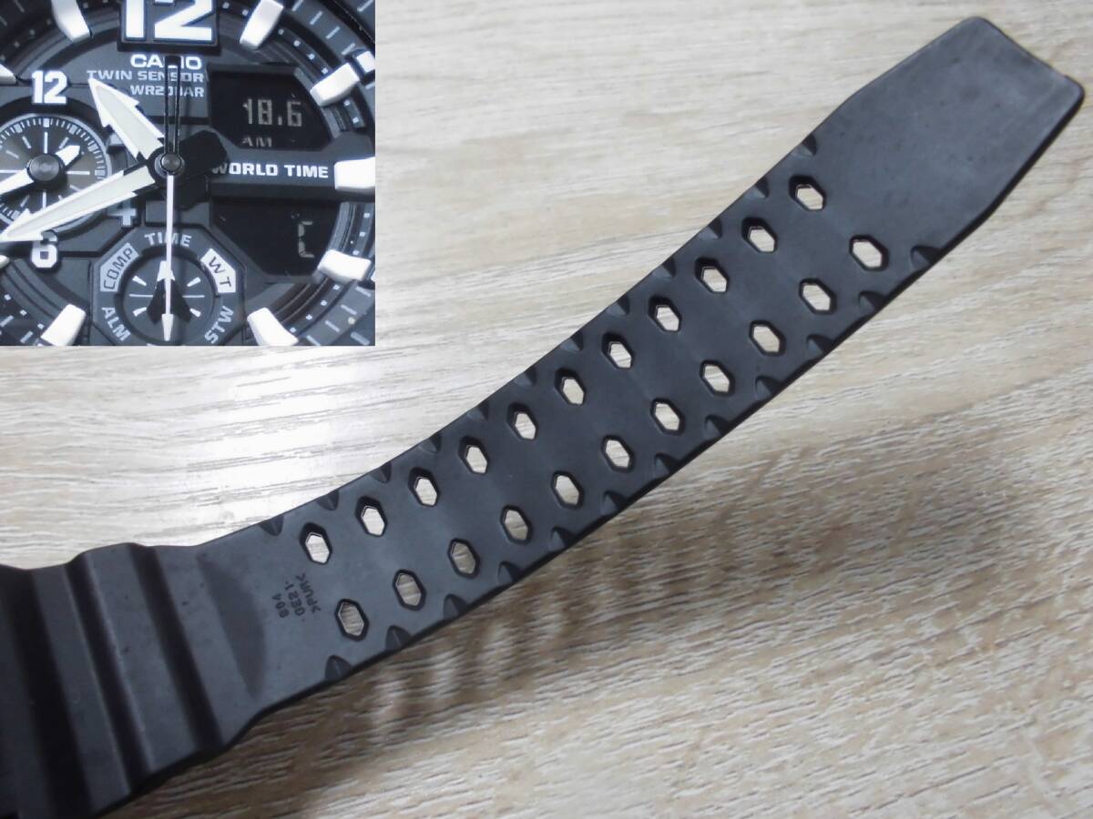 | 過酷な環境下で活動するパイロットのためのG-SHOCK「グラビティマスター」シリーズの、ワールドタイムを進化させたモデル GA-1100-1AJF!!! さまざまな情報を必要とするパイロットのために、現在時刻に加えもうひとつの時刻情報の表示・確認が求められるアビエーションウオッチです。ホームタイムは幅広の時分針で視認性を高め、ローカルタイムはインダイアルで12時間制表示とし、2都市の現在時刻を同時に感覚的に確認できるようにしています。また方位・温度センサーを搭載し、60秒間の連続方位計測と温度計測が可能になりました。更に高輝度なLEDライトにより、暗所でも時刻やその他の情報を確認できます。タフネスと多機能により、アビエーションウオッチとして更なる進化を果たしたグラビティマスターです。 中古ですが状態は良いです。写真の時計だけの出品です。方位や温度などを計測した写真を載せていますのでご覧ください。中古なのでコキズはありますが良い状態です。 |