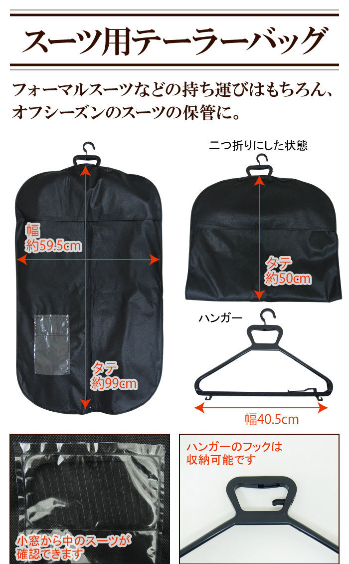 メンズスーツ用 ハンガー付きテーラーバッグ≪二つ折りタイプ≫| ※商品写真は、パソコンのモニタやカラー設定・お部屋の照明・日光などにより色の変化が感じられる場合がございます。 予めご理解いただきますようお願いいたします。 |
