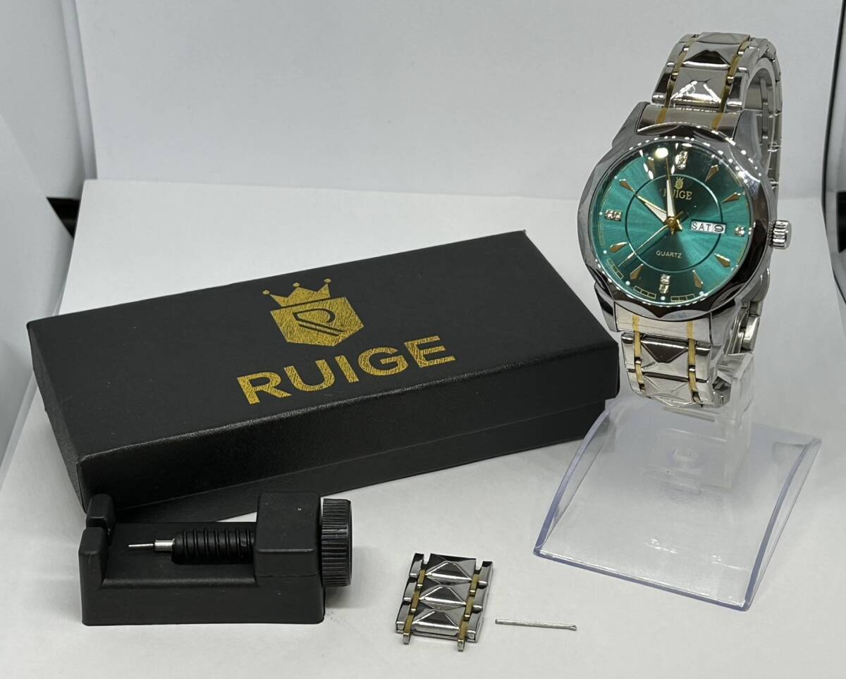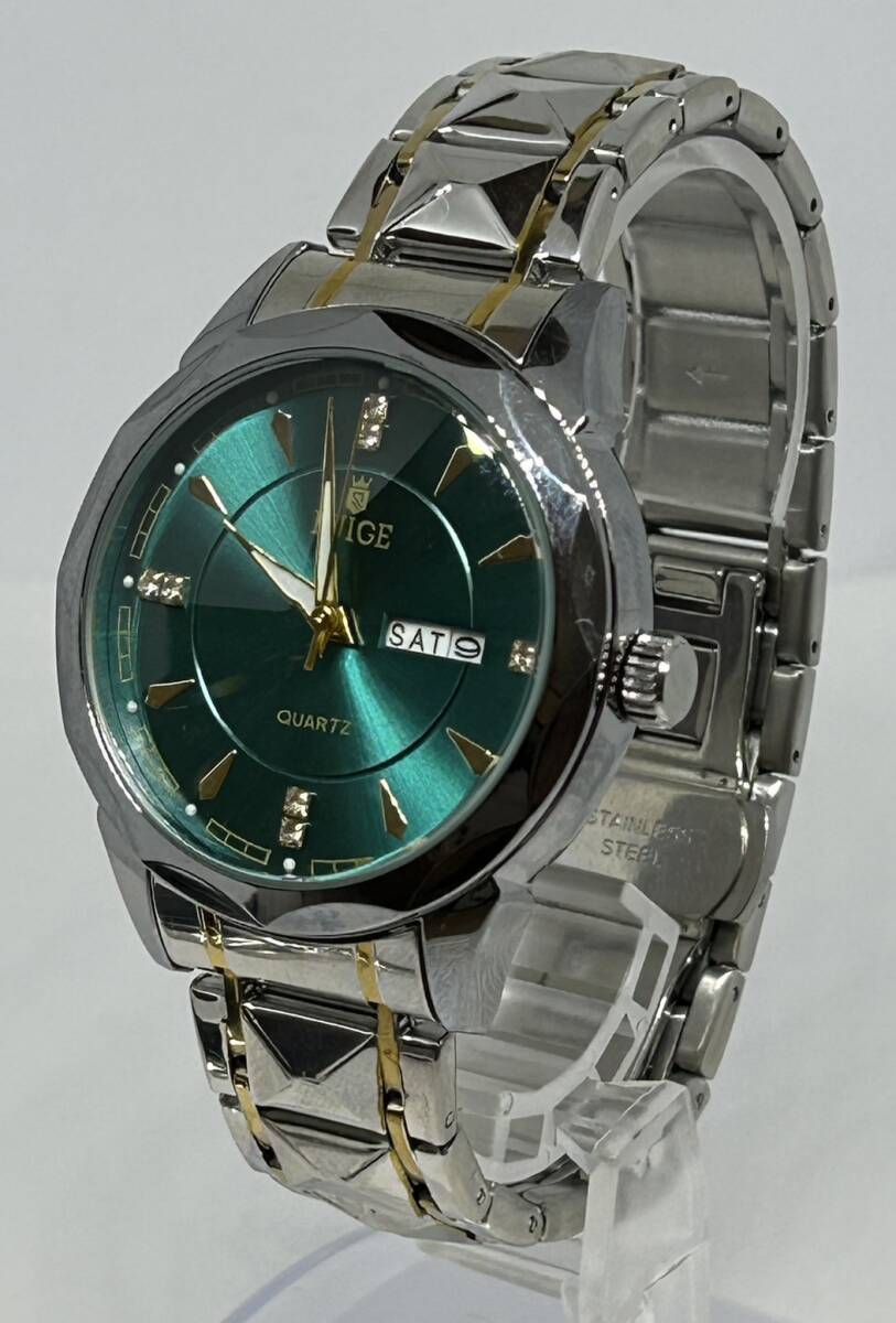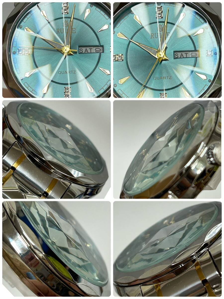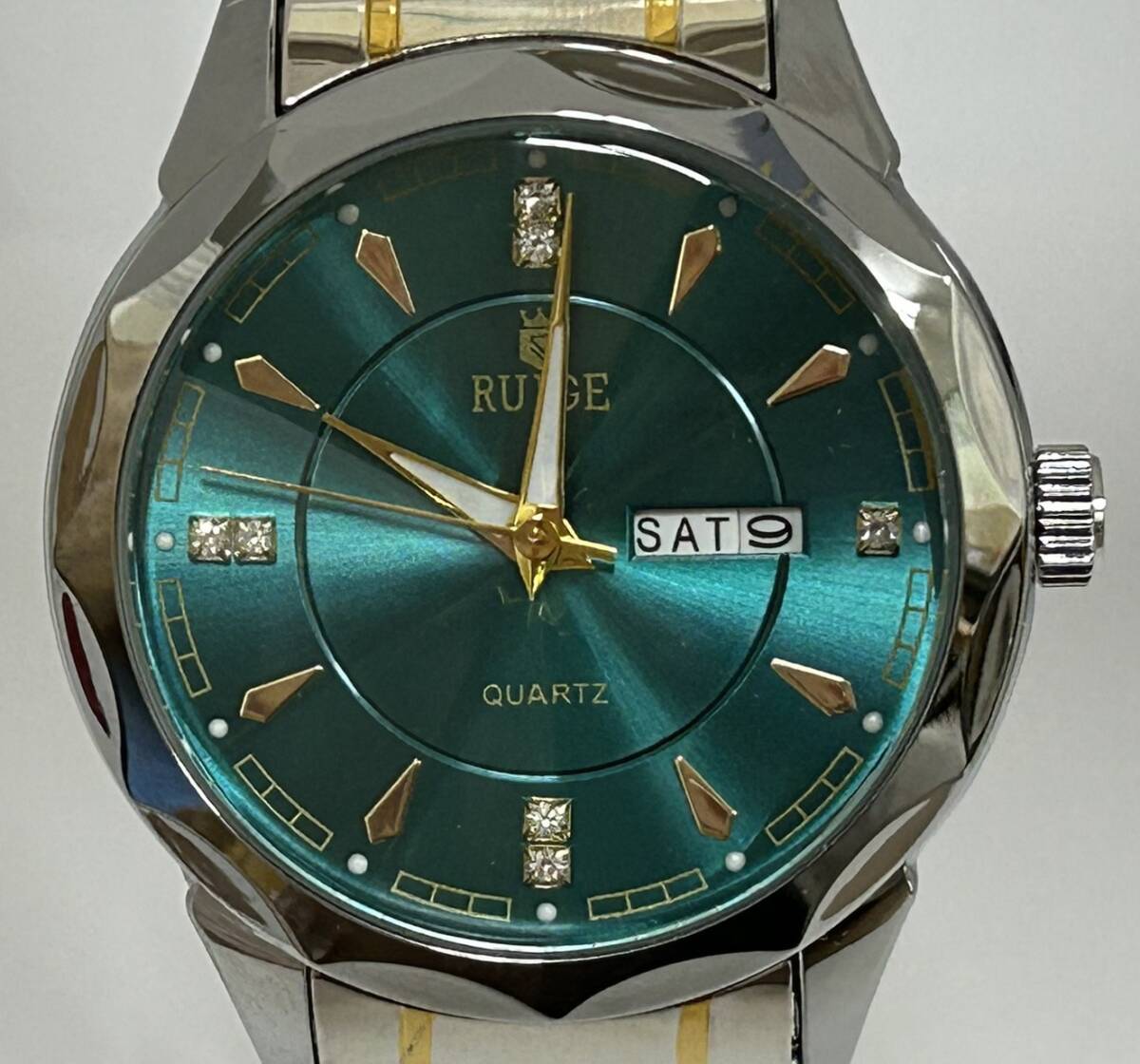 | 〇ダイヤモンドミラーが輝く! RUIGE 腕時計 稼働 クォーツ デイデイト N8 文字盤グリーン シルバーカラー 緑 ルイージ ルイジ【6831SS】K13 | ||