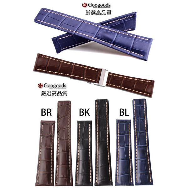 高級本革腕時計ベルト For ブライトリング LB056 ブルー 24mm