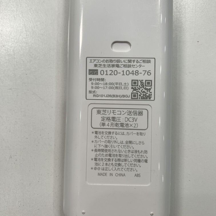 C2F984 【送料250円】エアコン リモコン / TOSHIBA 東芝 RG101J26(B3H)/BGJ 冷房 暖房 動作確認済み★即発送★