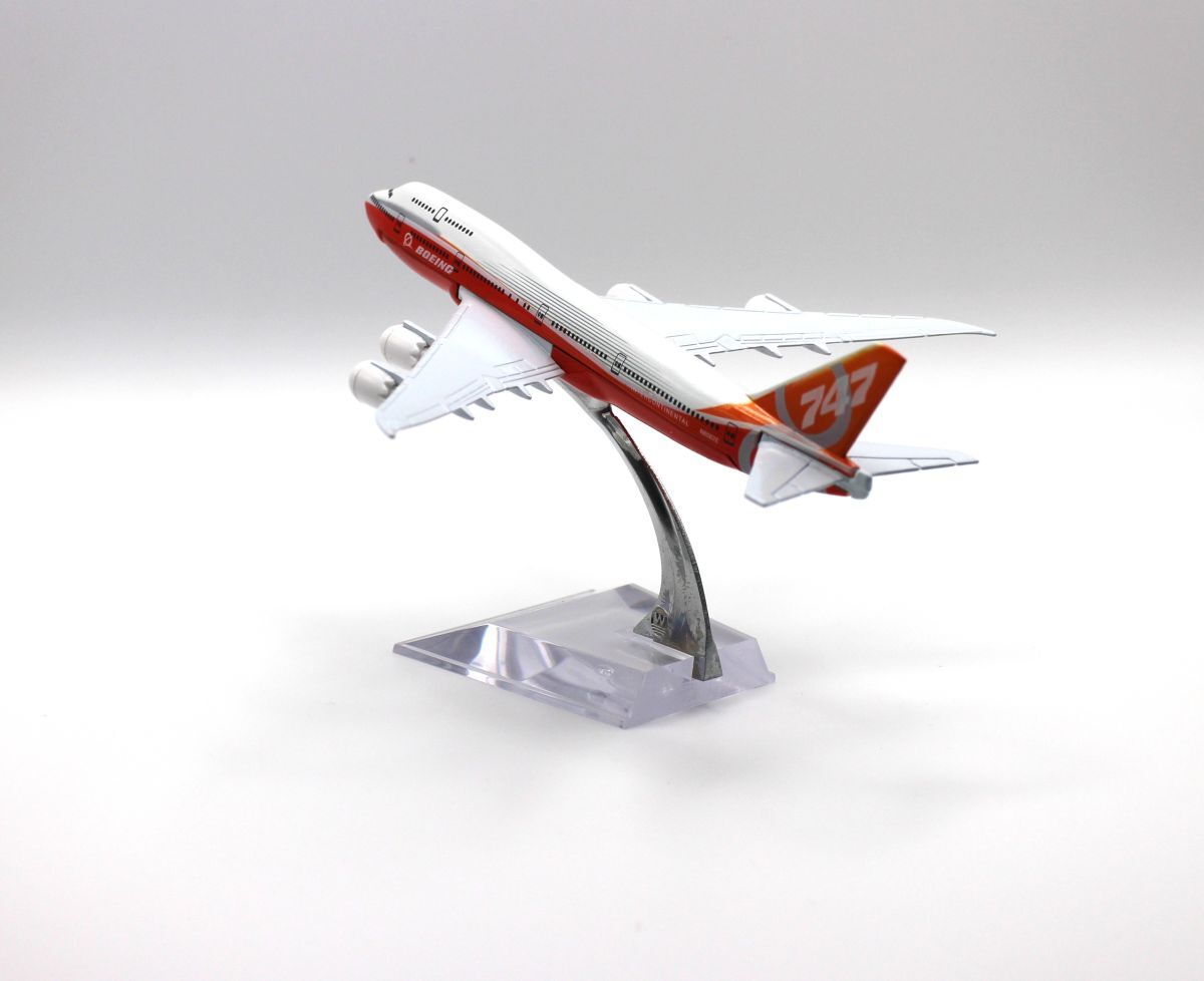 レトロ感あふれる赤と白のグラデーション塗装に、「BOEING」ロゴと大きな「747」の数字が尾翼に描かれたインパクトのあるデザインは、試験飛行やPR用に使用された特別な塗装機を忠実に再現しています。