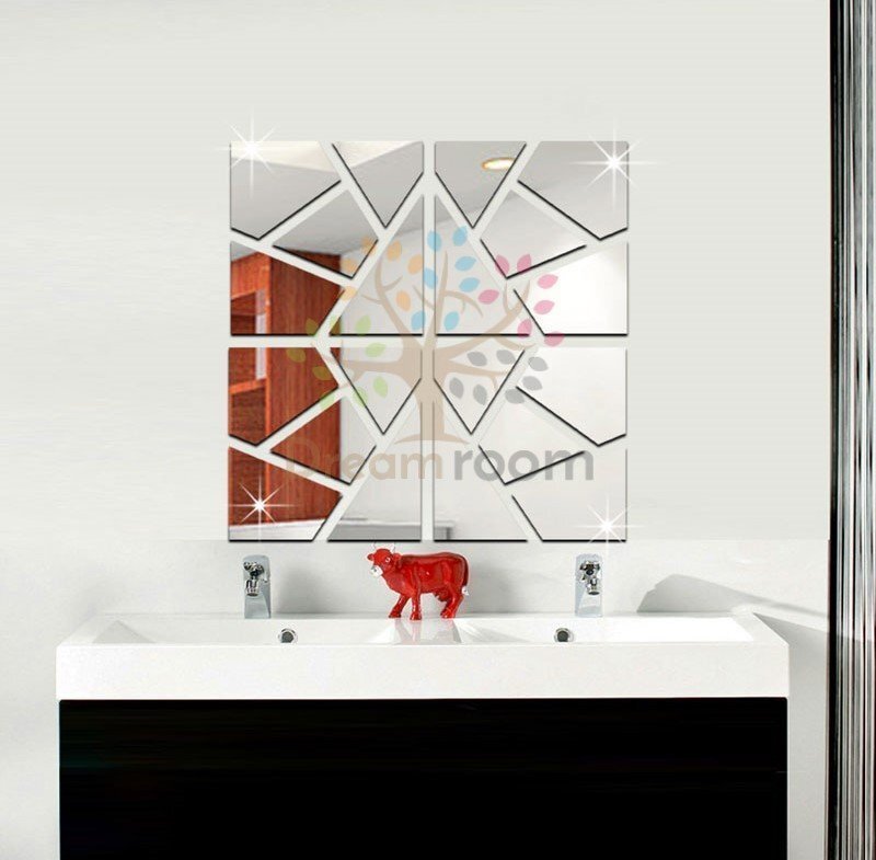 スタイリッシュ レオパード柄 モダンミラーウォールステッカー 【シルバー 25×25cm】 4枚 鏡 シール インテリア お洒落 リビング