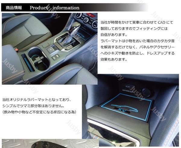 | XV専用(BLUE) インテリアラバーマット 15枚セットです 2017.4~ XV (GT型)専用インテリアラバーマット(青色タイプ)になります。 スマートフォン等を置く場合等運転中のカタカタ音の防止やパネルへの傷防止、ドレスアップに最適です。 ※別途 赤色タイプも販売しております。 全15枚セットで、XV(GT3/GT7型)に適合致します。 (※一部ドリンクホルダー部が使用できないグレード等もあります。画像をご確認ください) 先代XVより一層車内が非常に静かになった為、小物が動いた際などパネルと干渉・異音等が発生しやすい為是非当マットで保護&ドレスアップをお勧めいたします。 安心の車種別取付説明書と製品保証書が必ず付属いたします。 1年間は不具合・不適合・初期不良に対しての製品保証を行いますのでご安心してお買い求めください。 ※コピー防止のためダミーカットが入っております。使用・外観上は一切問題ありません。 ( ・∀・)Φスタッフレビュー 専用設計なのでフィッティングがとにかく良く、純正の様に見えます。 携帯電話等車で充電しながらそのまま置いていた部分にもラバーマットで保護できる為、携帯電話及び車両パネルにも優し満足度が高い逸品です。 |