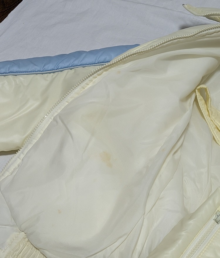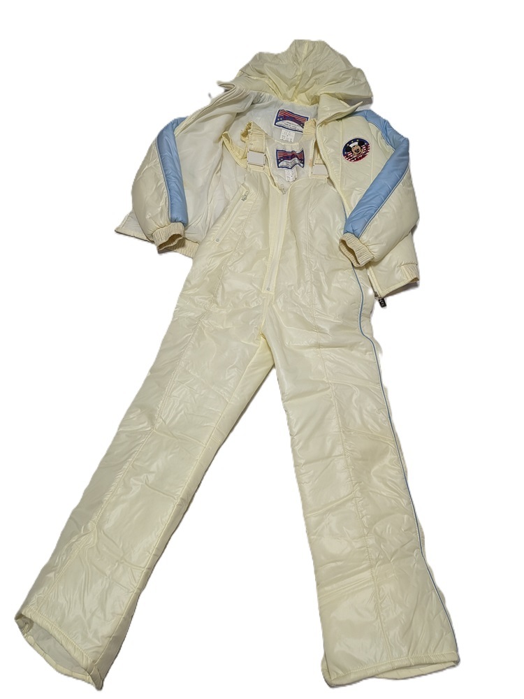 | 2シーズン約4回使用しました。 サイズはM。 上下-身長155。 胸囲82。 ジャンパーの着丈約54cm・ 袖丈(脇下から)約40cm。 インナーにヨゴレあります。 ズボンの股下約66cm。 股下の調整はできません。 フード取り外しできません。 素材は上下、 表地ナイロン100%。 中綿ポリエステル100%。 スボンの背中インナー部分に ヨゴレあります。 見落としのあるヨゴレや オリシワなどある事を ご理解下さい。 |