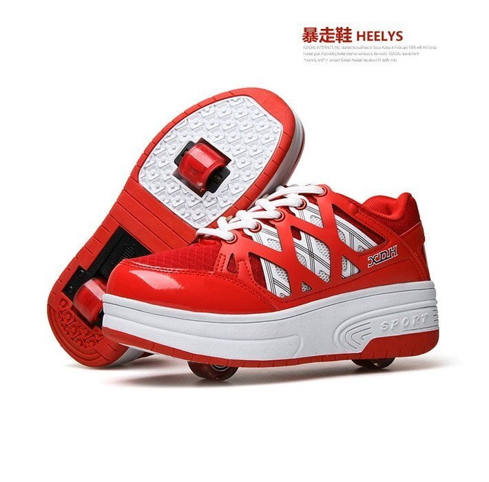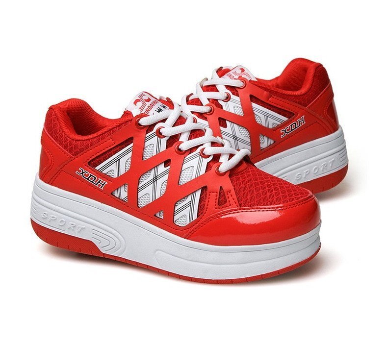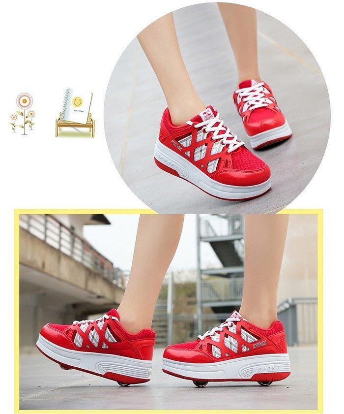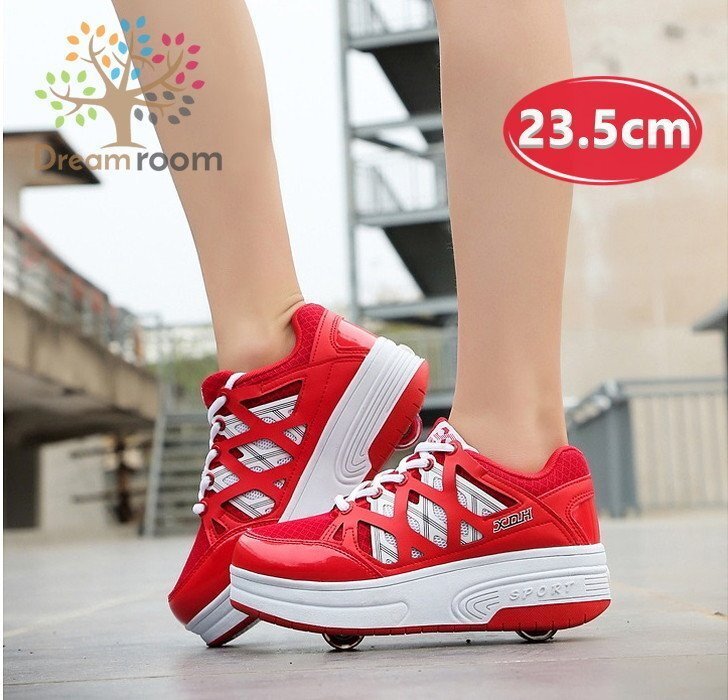 1スタ☆光る☆LED ライトアップスニーカー&ローラーシューズ 一体型 【K-161レッド 23.5cm】夜間 スケート靴 反射材 ジョギング 自転車