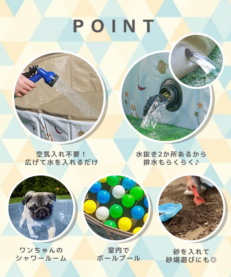 | 面倒な空気入れ不要! プールを広げて水をいれたらあっという間にプールの完成 摩擦などに強く破れにくく、長く使えます♪ また、プールの内側は全面すべり止め仕様で安全に遊べます。 側面に2ヵ所の排水口付きなので水抜きもらくらく 大変な後片付けも素早く、簡単にできちゃいます! 使わない時は小さく折りたためます。 収納場所に困りにくく、持ち運びもしやすいです! 室内でボールプールやお外で砂場プール、ペットプール等、使い方無限大です☆ ※カラーボールは別売りです 【商品詳細】 カラー:コーギーブラウン サイズ:(約)160cm×160cm×30cm 重量:(約)4.7kg 素材:ポリ塩化ビニール(PVC) (フォールディングプール 折りたたみ 折り畳み 非膨張式プール ファミリープール ベビープール 砂場プール 庭遊び おしゃれ かわいい プレゼント 誕生日 子供の日 人気 おすすめ 安い 送料無料 WEIMALL) |