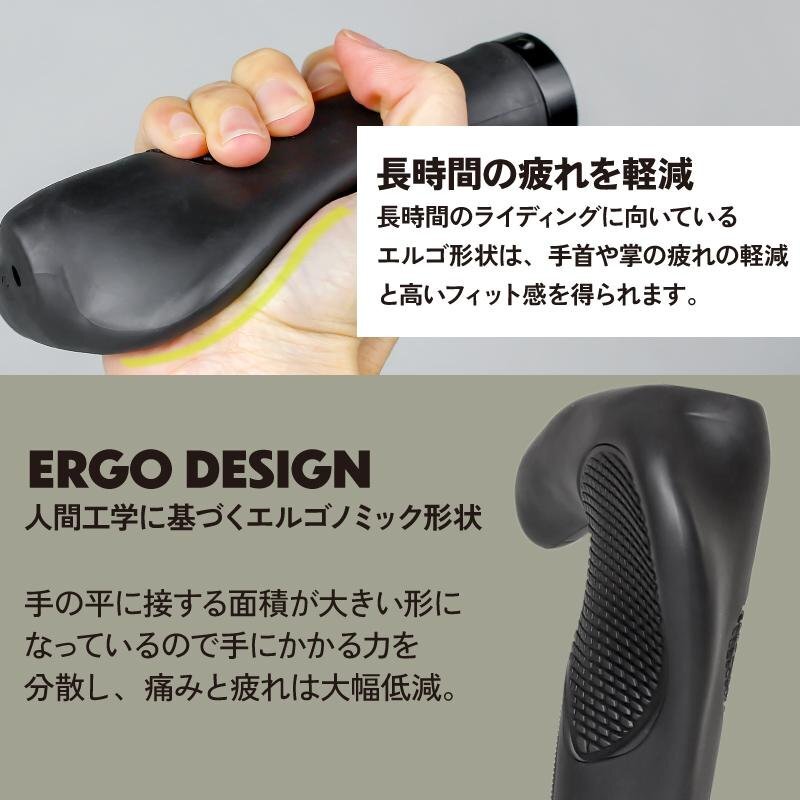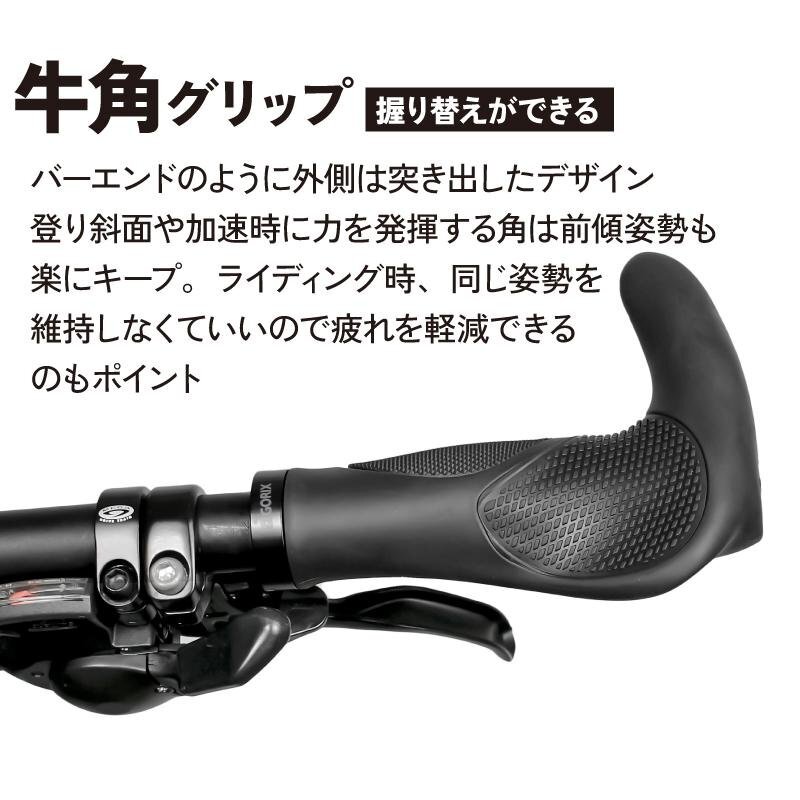 GORIX 自転車グリップ GQZ857 「ライド快適にするエルゴ型牛角グリップ」 この牛角グリップは、バーエンドのように外側が突き出したデザインを採用。 ハンドルバーの両側を縦に握ることで、手の位置を自由に調整でき、長時間のライドでも負担を軽減します。 また、縦に握ることでハンドルを体側に引き寄せやすくなり、上り坂やスプリント時のパワー伝達をサポートします。 エルゴデザインによる人間工学に基づいた形状が、手首や掌の負担を軽減し、長時間の走行でも快適な握り心地を提供。 さらに、グリップ表面には異なる凸凹パターンを施し、汗や雨で濡れても滑りにくい高いグリップ力を発揮します。 素材にはTPR(熱可塑性ゴム)を採用し、耐久性・耐摩耗性・耐衝撃性に優れ、長期間の使用でも劣化しにくい仕様。 取り付けはロックオンタイプ(ネジ固定)で、簡単に交換や角度調整が可能です。 エンドキャップ有りタイプはダブルロックシステムでしっかり固定し、グリップの落下を防ぎます。 また、エンドキャップ有り・無しの2種類をご用意。シンプルで交換しやすい無しタイプと、安定感のある有りタイプからお選びいただけます。 マウンテンバイクやクロスバイク、スポーツ電動自転車、ミニベロなどほとんどのフラットハンドル自転車に対応。 特徴 ●バーエンドのように外側が突き出したデザインの牛角グリップ ●人間工学(エルゴノミクス)に基づいたデザインのエルゴグリップ ●グリップ表面には異なる凸凹パターンを施しグリップ力を向上 ●耐久性と耐摩耗性、耐滑り性、耐衝撃性に優れているTPR素材 ●交換作業や固定力があるロックオンタイプ 【牛角グリップ】 牛角グリップは、バーエンドのように外側が突き出したデザインの自転車グリップです。 ハンドルバーの両側を縦に握ることができ、手の位置を自由に変えられるため、長時間のライドでも同じ姿勢を維持する必要がありません。 さらに、縦に握ることでハンドルを体側に力強く引きつけやすくなり、自然とパワーを入れることが可能です。 これにより、上り坂やスプリント時のパフォーマンス向上にも貢献し、快適で効率的なライディングをサポートします。 【エルゴデザイン】 長時間のライディングに向いているエルゴ形状は、手首や掌の疲れの軽減と高いフィット感が期待できます。 手の平に接する面積が大きい形になっているので手にかかる力を分散し、痛みと疲れは大幅低減。 人間工学(エルゴノミクス)に基づいたデザイン。 【グリップ力】 グリップ表面には異なる凸凹パターンを施しグリップ力を向上。 汗や雨で濡れても滑りにくく手に吸い付くようなグリップ力を発揮。 【TPR素材】 耐久性と耐摩耗性、耐滑り性、耐衝撃性に優れています。劣化しにくい。 【ロックオンタイプ】 ロックオンタイプ(ネジ固定)で交換作業の短縮や角度調整の微調整が素早くできます。 エンドキャップ有りタイプは両サイドで固定するダブルロックシステムでグリップをしっかりと固定し、落下を防ぎます。 【適用自転車】 ハンドルバーの直径:22.2mm。ほとんどのタイプの自転車に適しています。 ※一部、特殊なハンドル径のハンドルでは使用できませんので、ご注意下さい。 【商品内容】:グリップ、エンドキャップ、取り付け工具 【サイズ】:(エンドキャップ有タイプ)長さ13.5cm、幅最大5.5cm, 内径φ2.22cm/(エンドキャプ無しタイプ)長さ14cm、幅最大5.8cm 重量:(エンドキャップ有タイプ)約264g/ペア/(エンドキャプ無しタイプ)約277g/ペア 材質:PP、TPR 対応フィットハンドルバーの直径:20-22.2mm 商品は入荷によりキズがある場合があります。 傷や細かい汚れが気になる方や神経質な方は入札をお控え下さい。 入荷時期により予告無く一部仕様変更する場合が有ります。 カラーはディスプレイ種類環境等により実物と異なって見える場合がございます。 |
